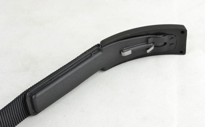 皮带全长:140cm 刀刃长:6cm 刃宽:2cm 刃厚:0.38cm 刃材:420 硬度:54HRC 表面:氧化 柄材:合金 柄长:9.6cm 重量:281克(含包装物) 其他: 半齿开锋 品质:高品质,出口转内销 包装:原装包装 每套包含:尼龙带一条,小刀一把,活动夹子一个 使用方法:先根据自身的腰围用活动夹子固定好,再将皮带头的扣子扣住夹子上的圆孔