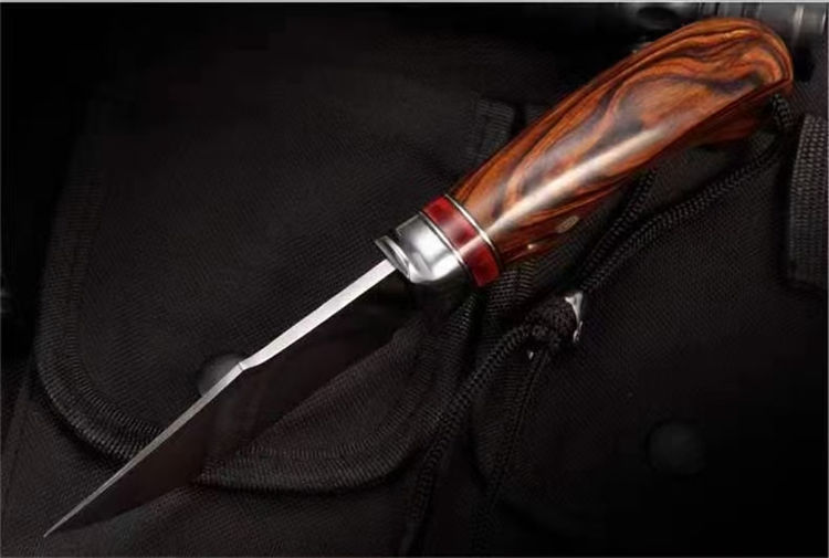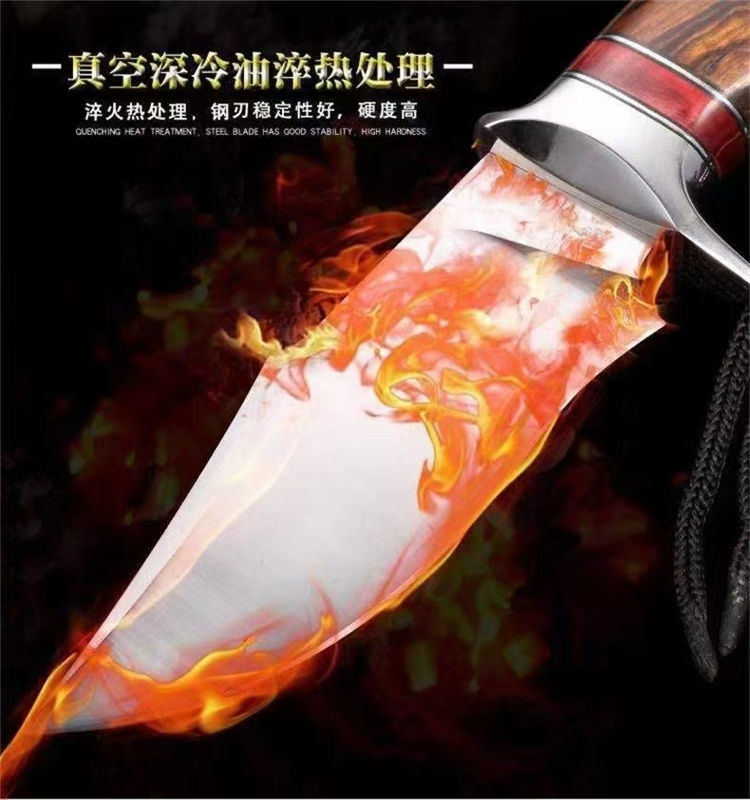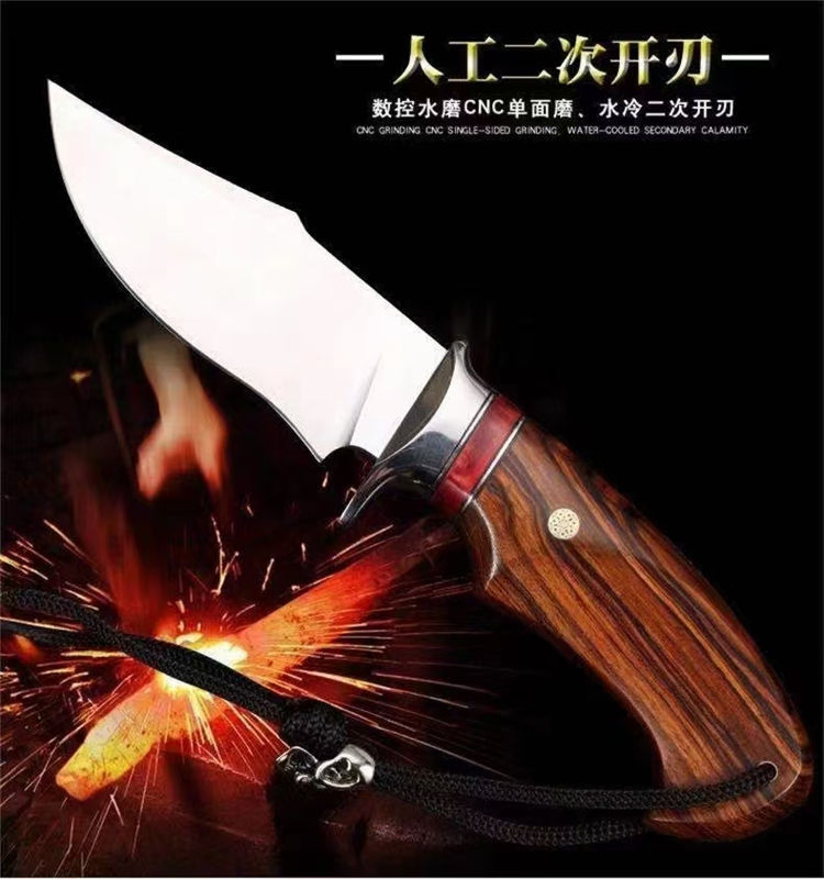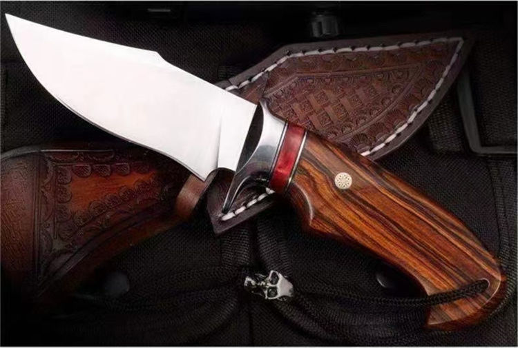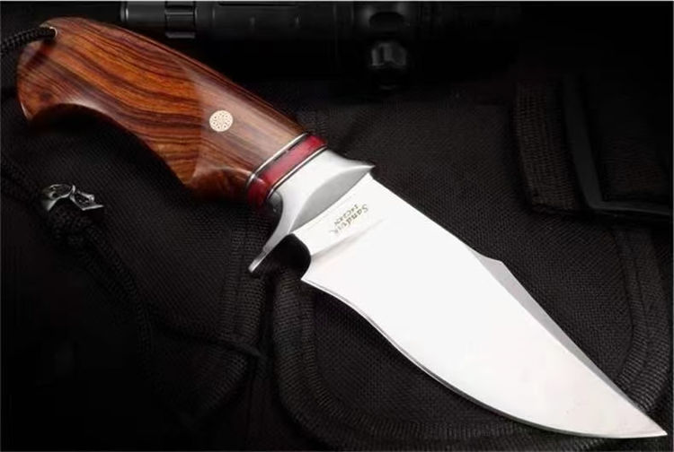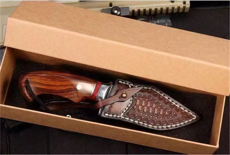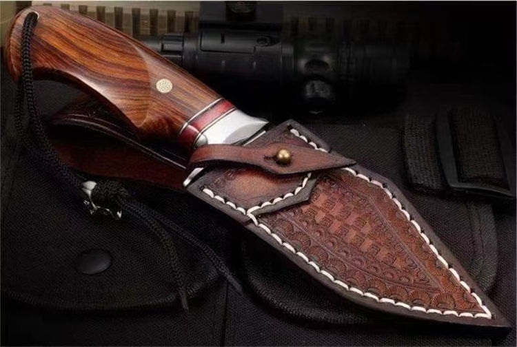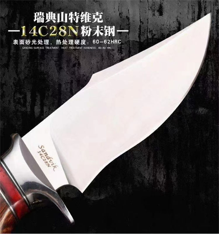 大黄蜂博伊直刀 总长:21CM 刃长:9.2CM 刃厚:3.2MM 刃宽:3.6CM 重量:155G 钢材:瑞典山特维克14C28N粉末钢 硬度:60-62HRC 热处理:真空深冷油淬热处理 研磨方式:数控水磨CNC单面磨 柄材:美国沙漠铁木与进口固化稳定木+驼骨 皮套:意大利进口优质手工雕花皮套纯手工缝线着色 包装:复古包装盒子