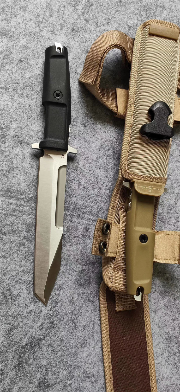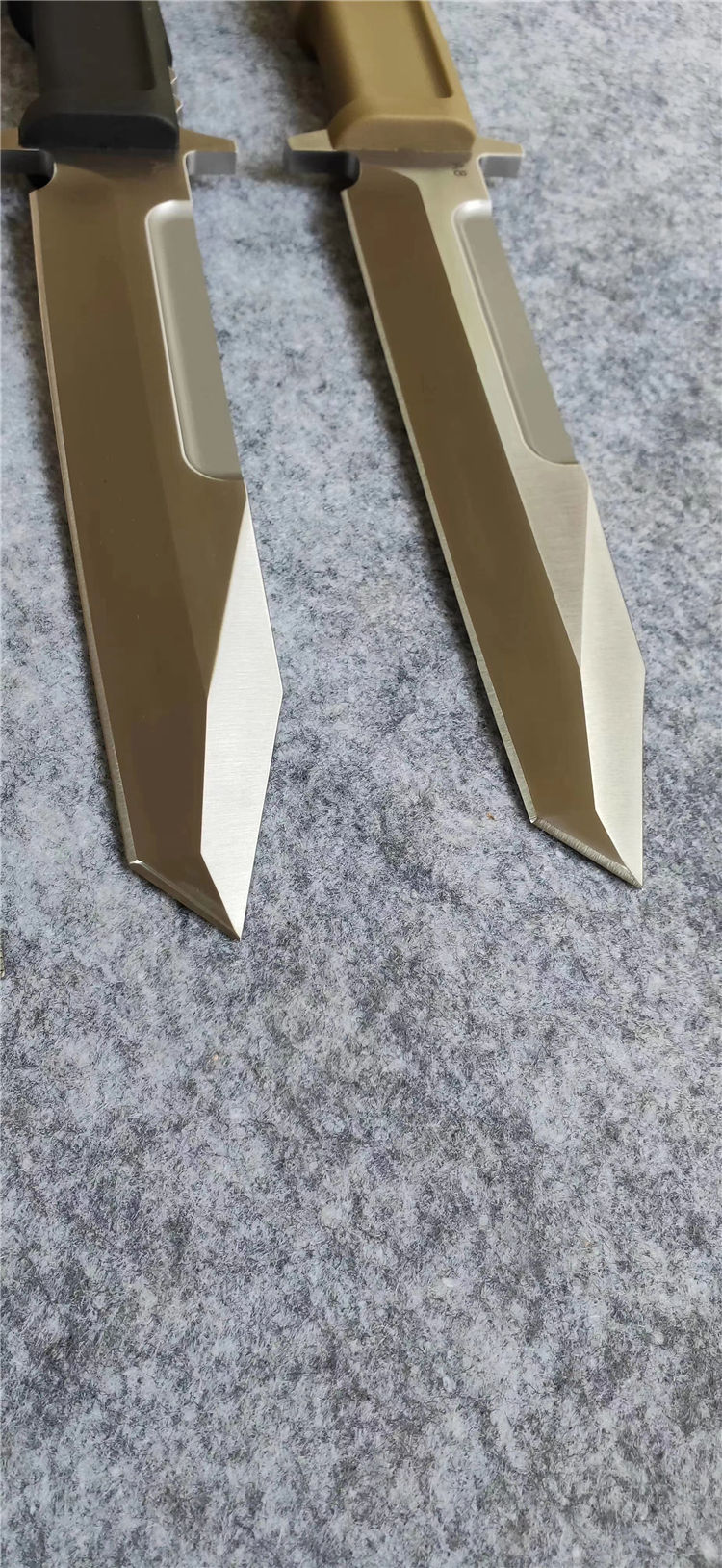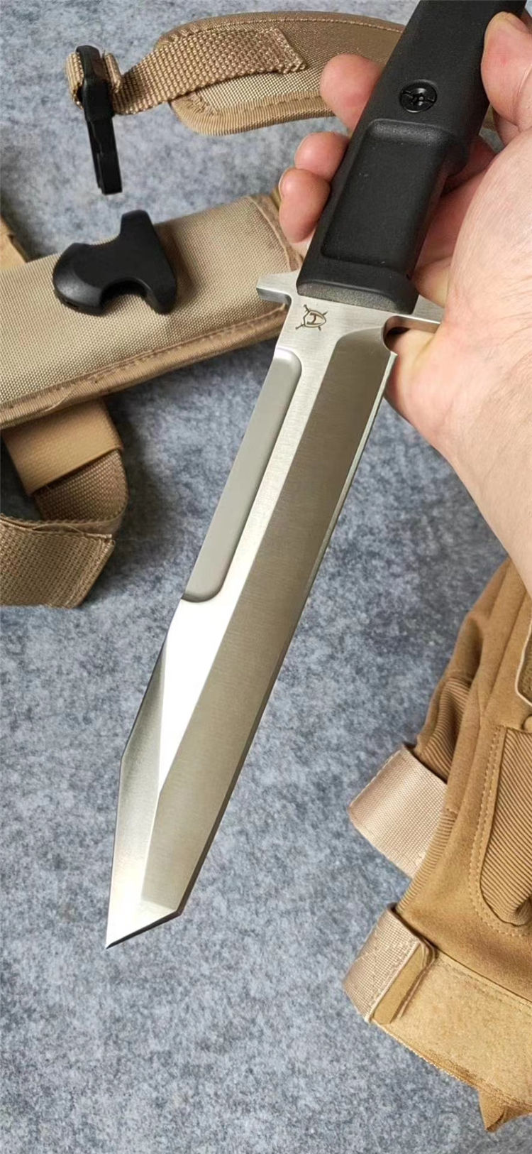 复刻极端武力支点 全长:310MM 柄长:130MM 刃厚:6MM 刃宽:32.5MM 最宽:54.5MM 硬度:59 材质:A8 净重:318G 中段平磨 表面砂光钢本克拉通手柄有两种颜色选择(沙漠色和黑色)配尼龙袋鞘表面砂光钢本克拉通手柄有两种颜色选择(沙漠色和黑色)配尼龙袋鞘