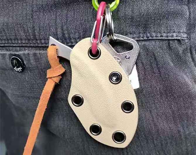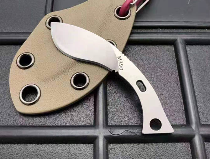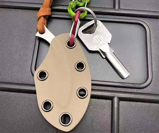 M390迷你钥匙小刀 全长:70mm刃长:38mm刃厚:2.0mm硬度:60±1HRC刃材:奥地利神钢M390鞘材:沙漠色K鞘净重:21g