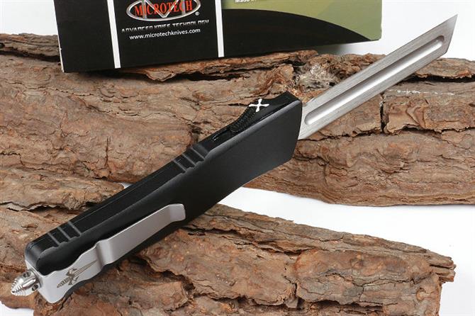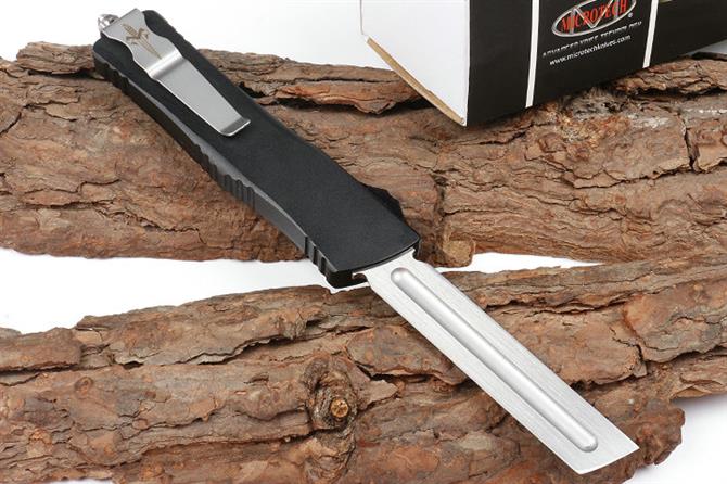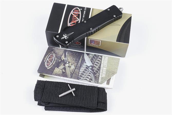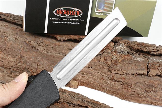 微技术大龙A12铲头剃刀 品牌:MICROTECH美国微技术全长:24.5CM刃长:10CM柄长:14.5CM刃宽:2.1CM刃厚:0.31CM刃材:5CR13柄材:铝合金镀黑钛刀型:直跳锁定类型:按钮锁刀重:141克重量:215克(含包装)附件:尼龙套,说明书,彩盒,送拆刀工具整刀用CNC,电脑锣,线切割制作而成,手工,精密度非常高,绝对不会缩头,很值得收藏的一把刀,数量有限