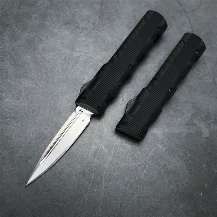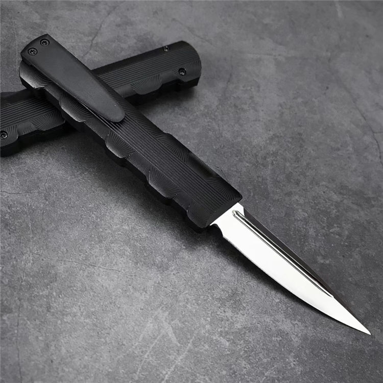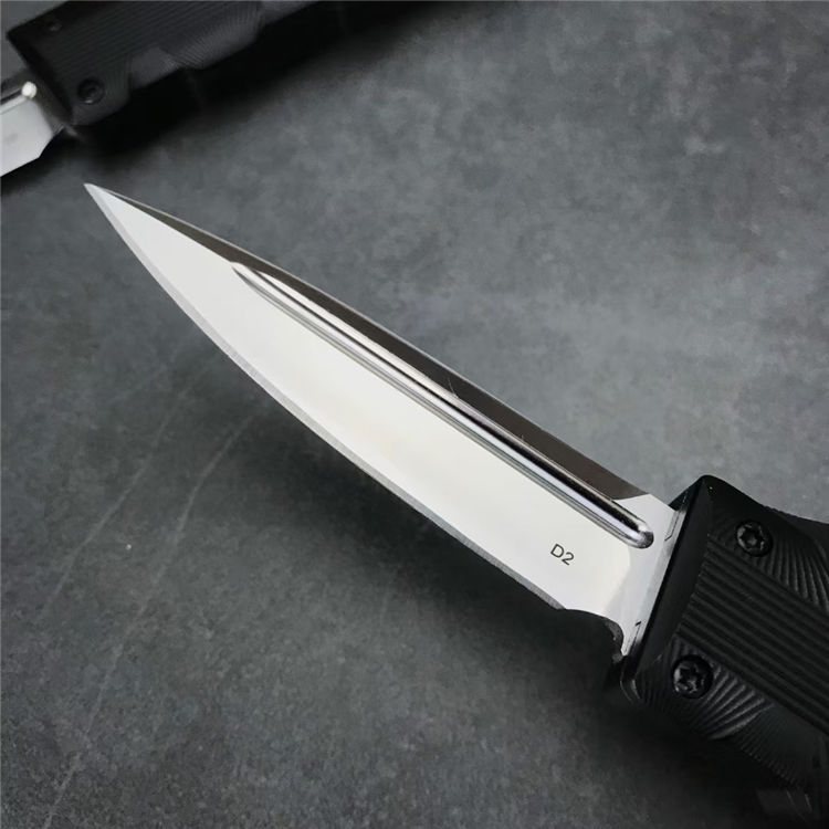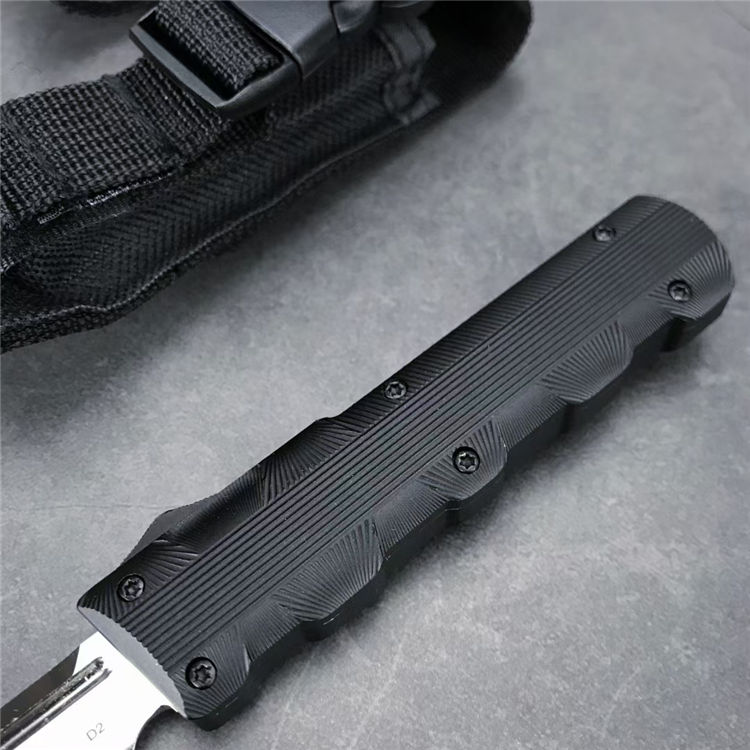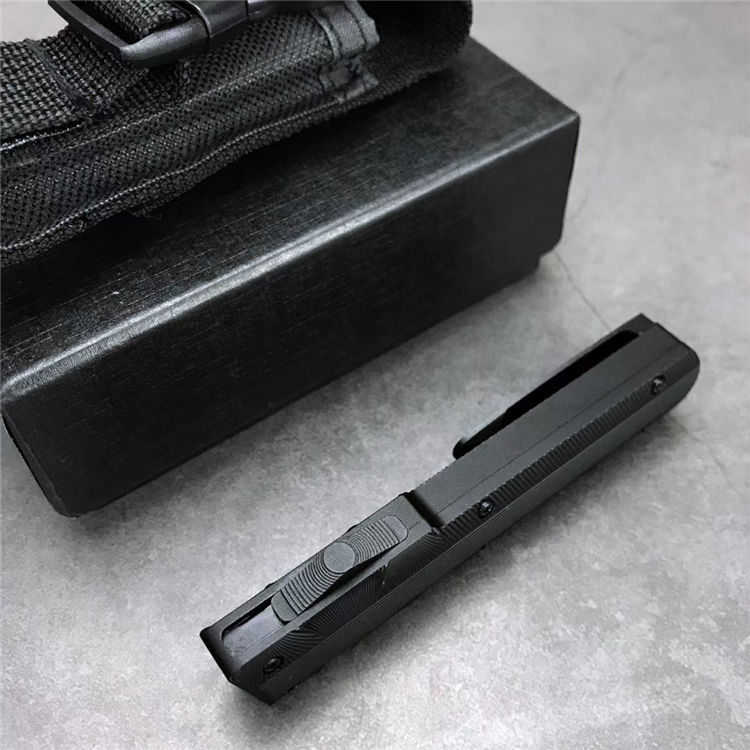 尖锋直出跳刀 全长:17.3CM 刃材:D2 刃长:6.8CM 刃宽:0.9CM 刃厚:0.38CM 柄材:铝合金(方格防滑纹) 刀夹:铝合金 刀型:直跳刀 重量:6.5克 包装重量:123g 附件:尼龙布袋,,礼品盒 整刀用,CNC,电脑锣,线切割制作而成,手工,精密度非常高