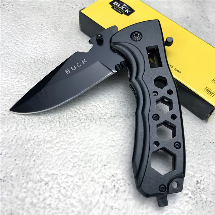 巴克DA55多功能折刀 全长:20.9CM 刃长:8.8CM 刃材:5CR13MOV 刃宽:3.2CM 刃厚:3MM 柄长:11.5CM 柄材:铝 重量:153G