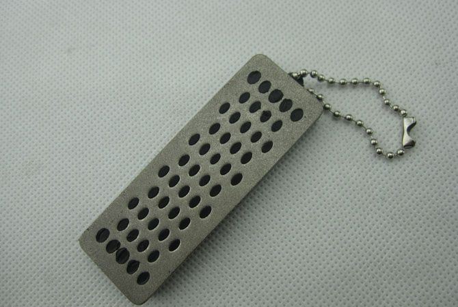 金刚砂磨刀器 长 度:7.3cm 宽 度:2.5cm 厚 度:0.7cm 材 料:精钢砂面+塑料 重 量:40.0克 备 注:带链条
