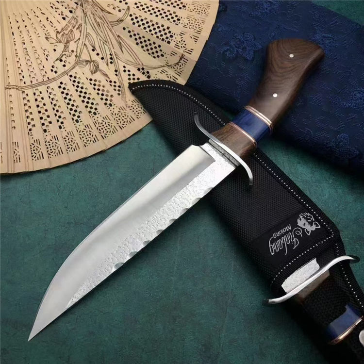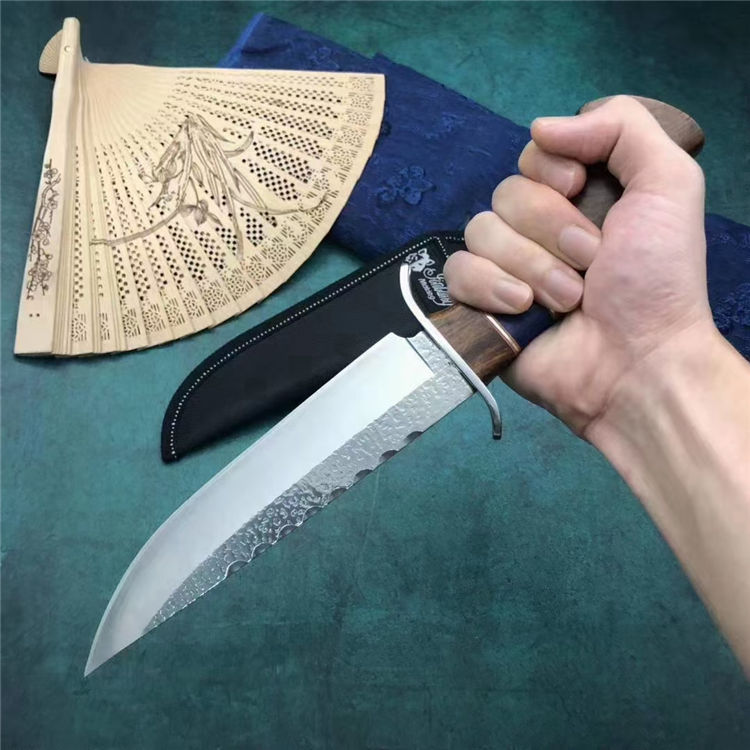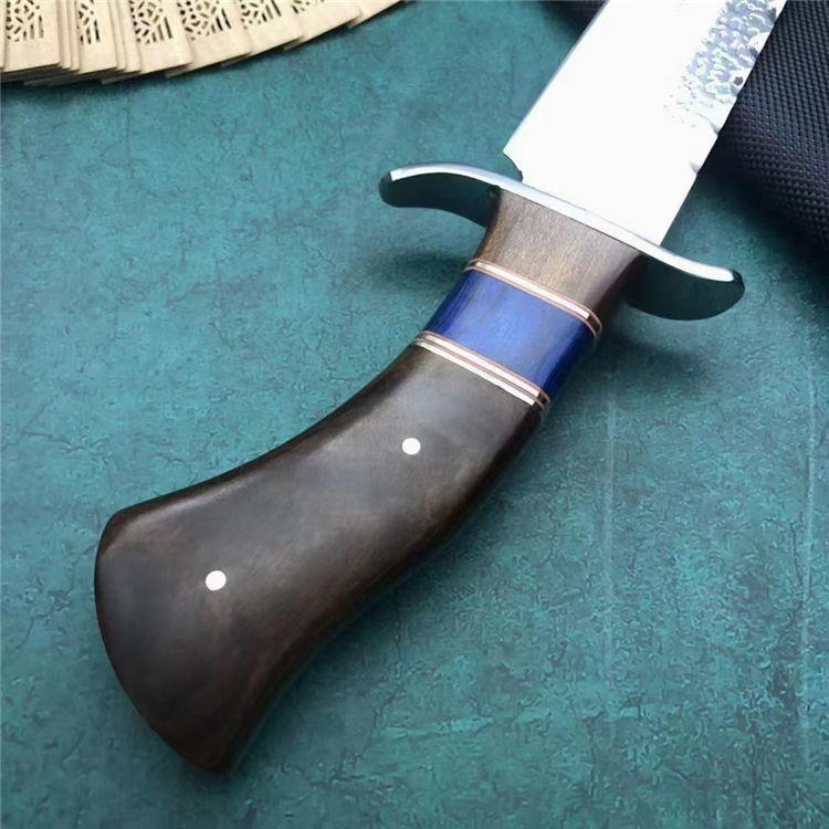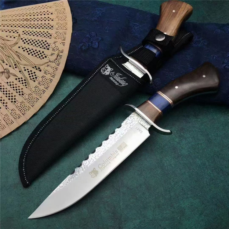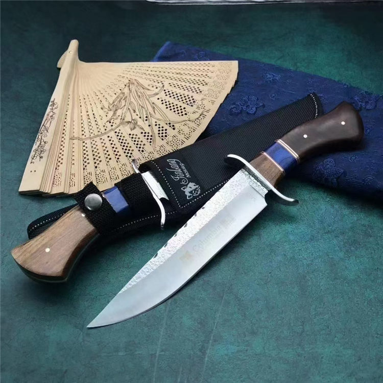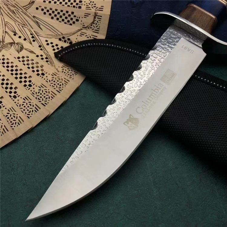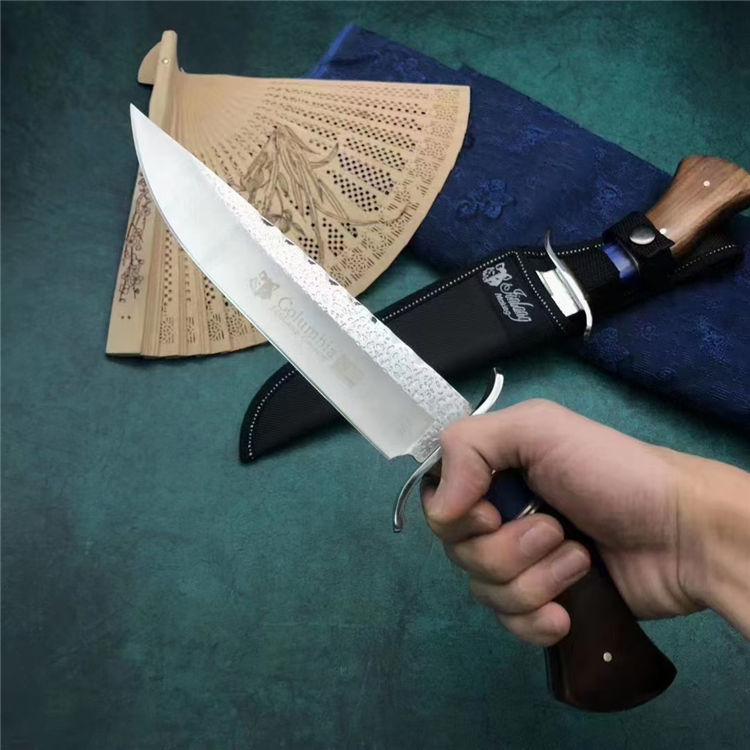 哥伦比亚SA81直刀 类型:直刀 全长:31cm 刃长:18cm 刃宽:3.9cm(最宽处) 刃厚:3.8mm 柄长:12cm 表面:锻打纹+砂光拉丝 刃材:3CR13 硬度:57HRC 柄材:钢头+进口彩木 重量:373克(含包装) 包装:尼龙套