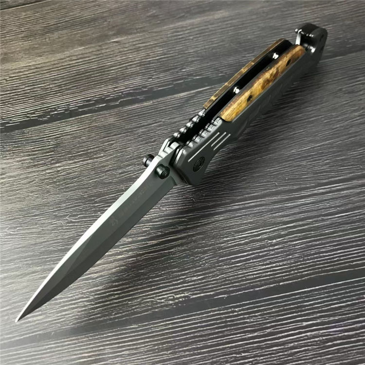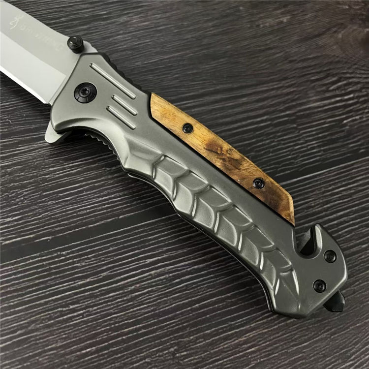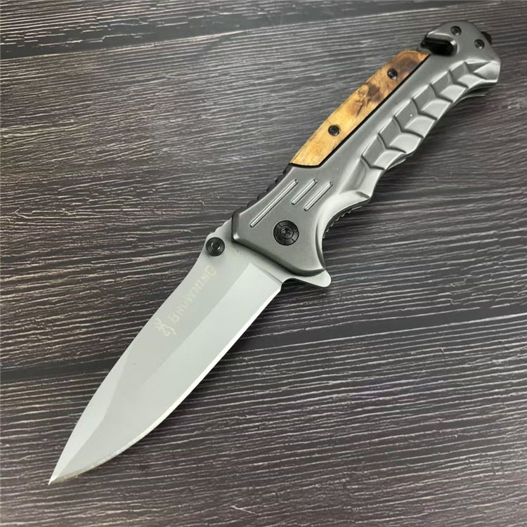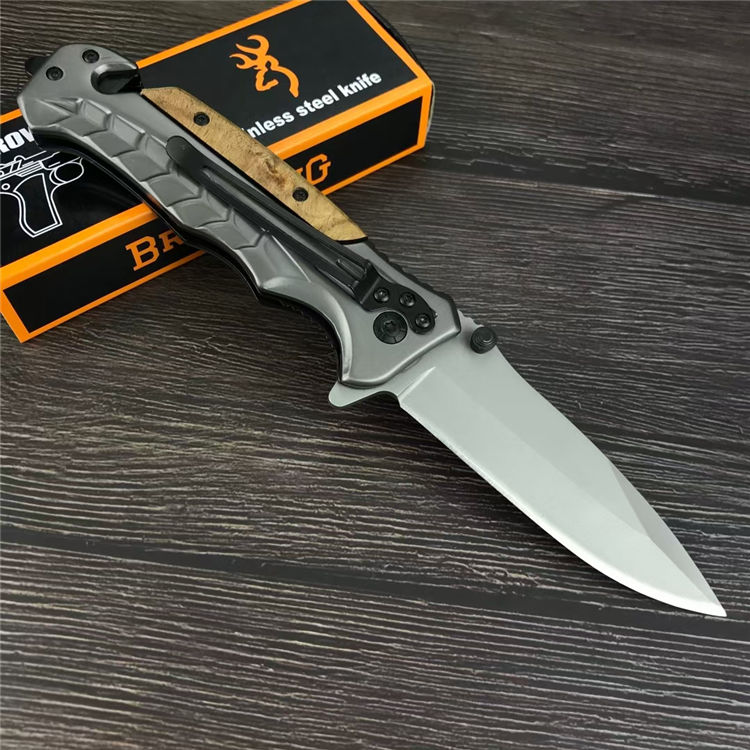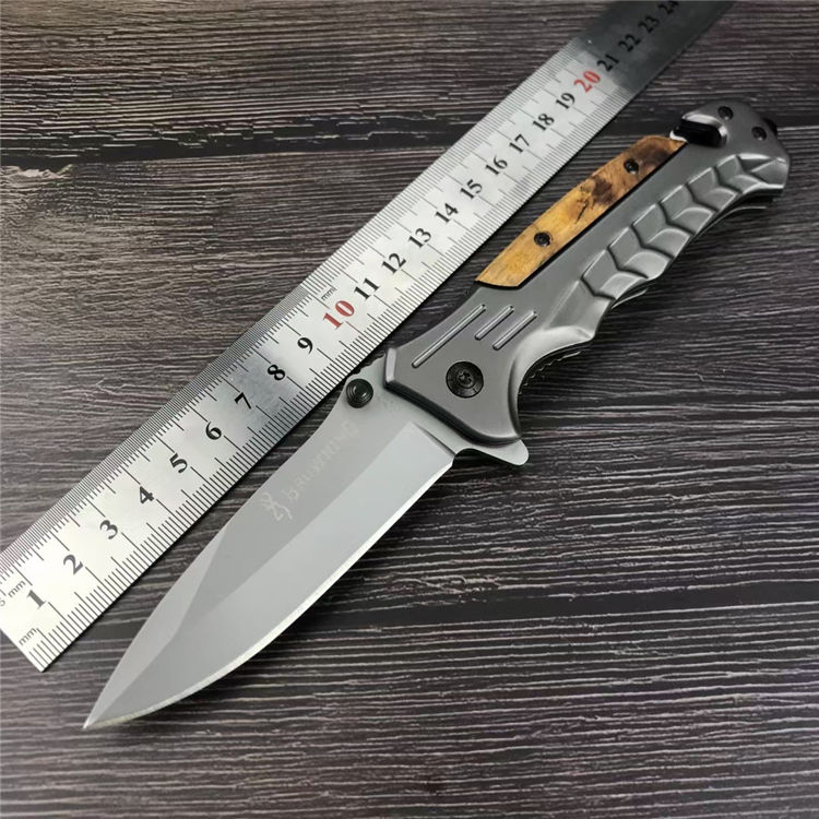 勃郎宁蛇鳞折刀 全长:23CM 刃长:9CM 刃材:5CR13MOV 刃宽: 3CM 刃厚:4MM 柄长:11.8CM 柄材:不锈钢+白影木 重量:233G