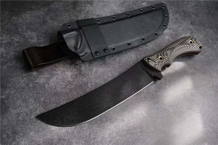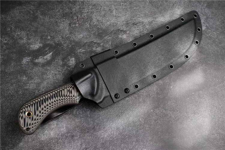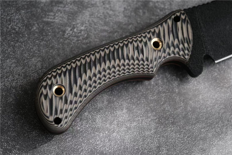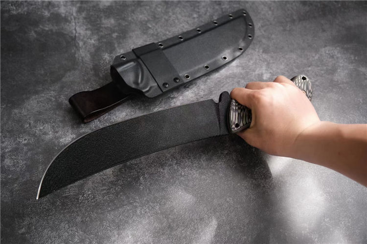 2018年大连劈砍大赛两刀断木方本品采用O1刃材分段热处理黑色涂层镀铬两款小V开刃一体龙骨叠层双色G10手柄战术K鞘