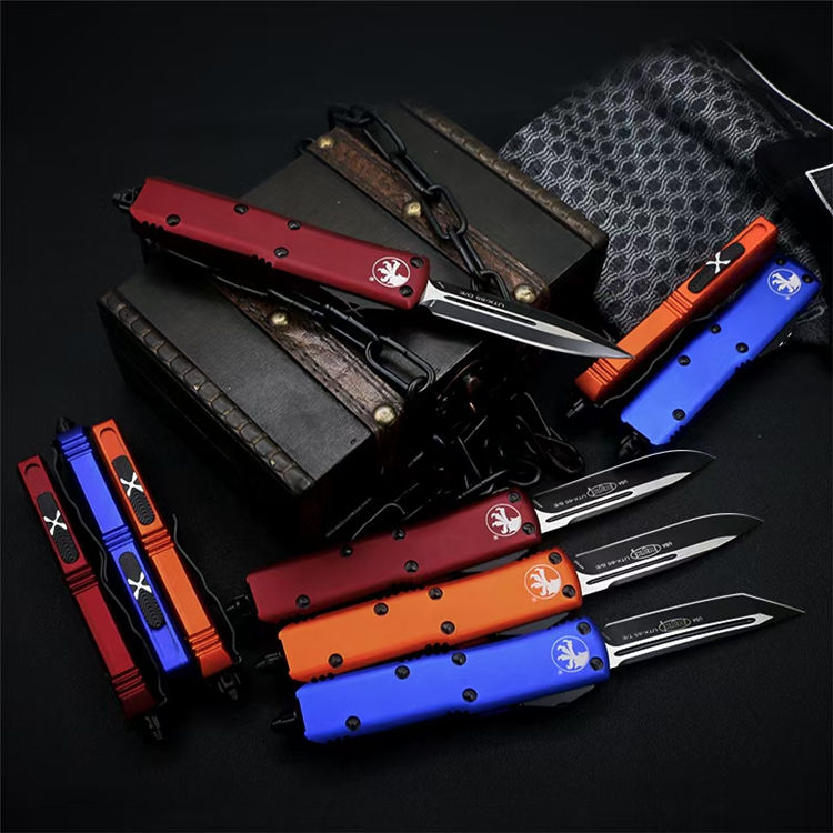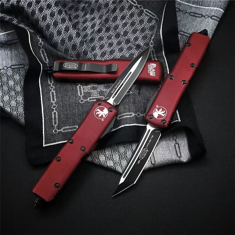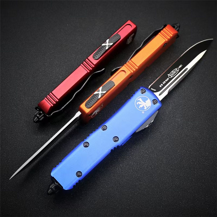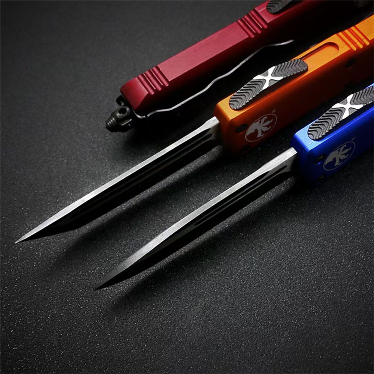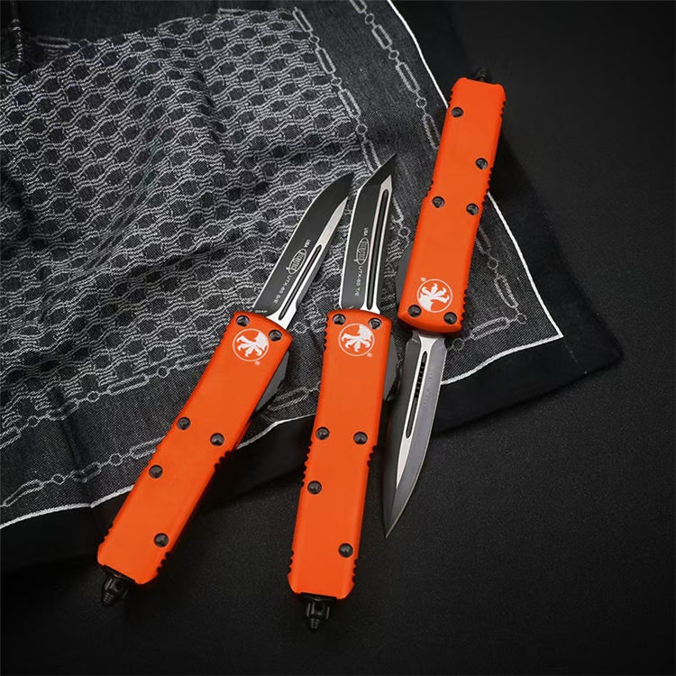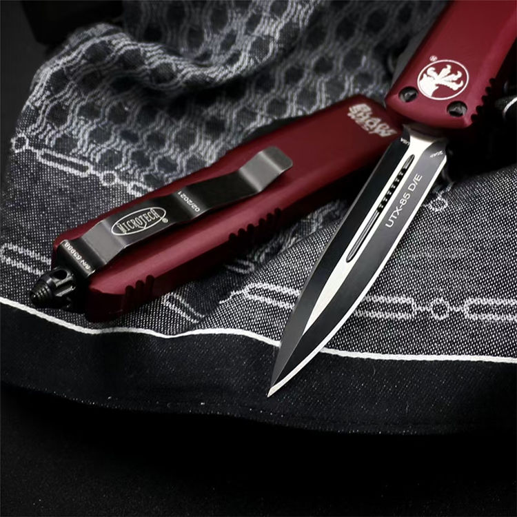 复刻微技术UTX85直出跳刀 全长:19cm 刃材:440c 刃厚:3.2mm 柄材:航空铝 硬度:58HRC 刃面处理:黑钛 包装:原装盒、工具、尼龙套