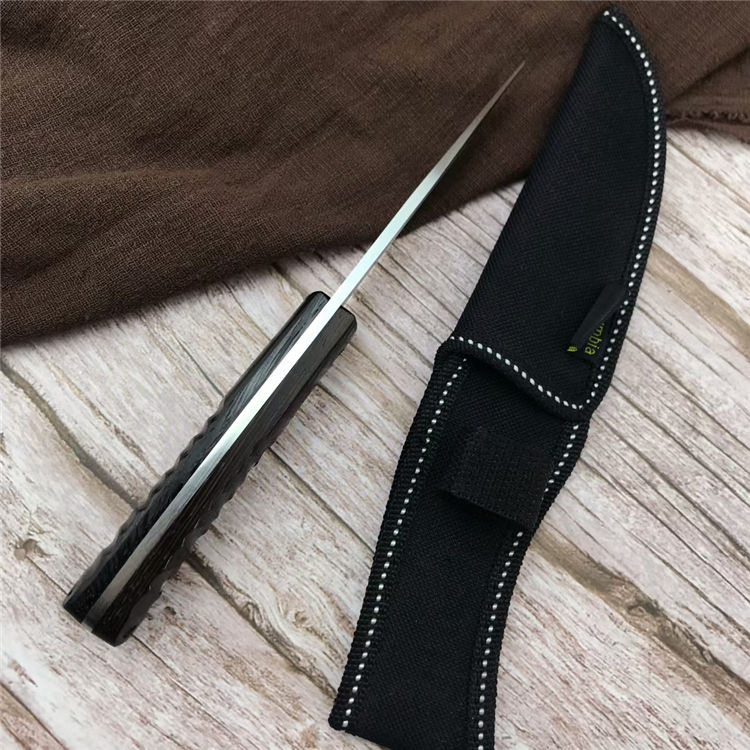 蜈蚣小猎直刀 全长:20.6CM 刃长:10CM 刃宽:2.5CM 刃材:5CR13MOV 刃厚:4MM 柄长:10.6CM 柄材:黑乌木 重量:138G