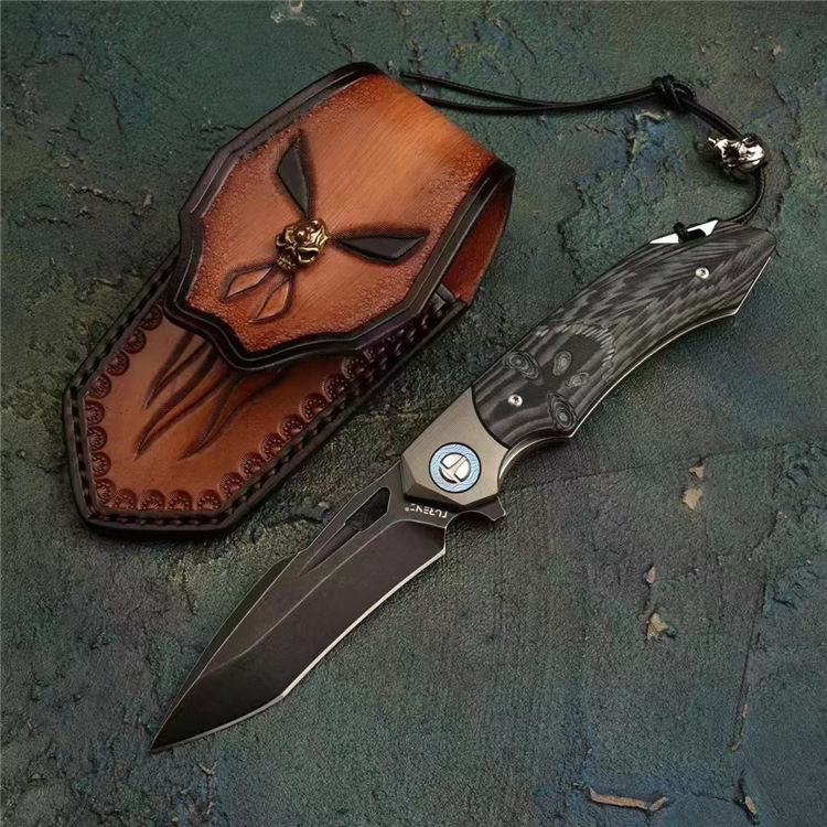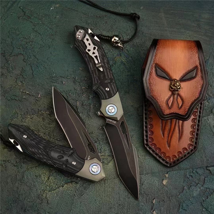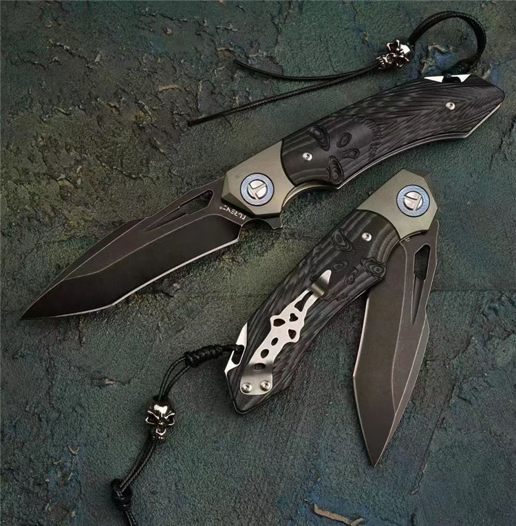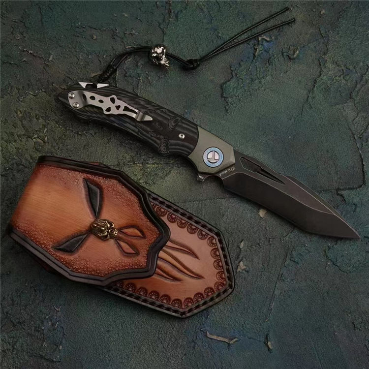 柄材:钛大马垫圈+TC4钛合金复古工艺绿+双色G10手工雕刻