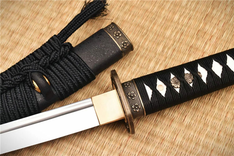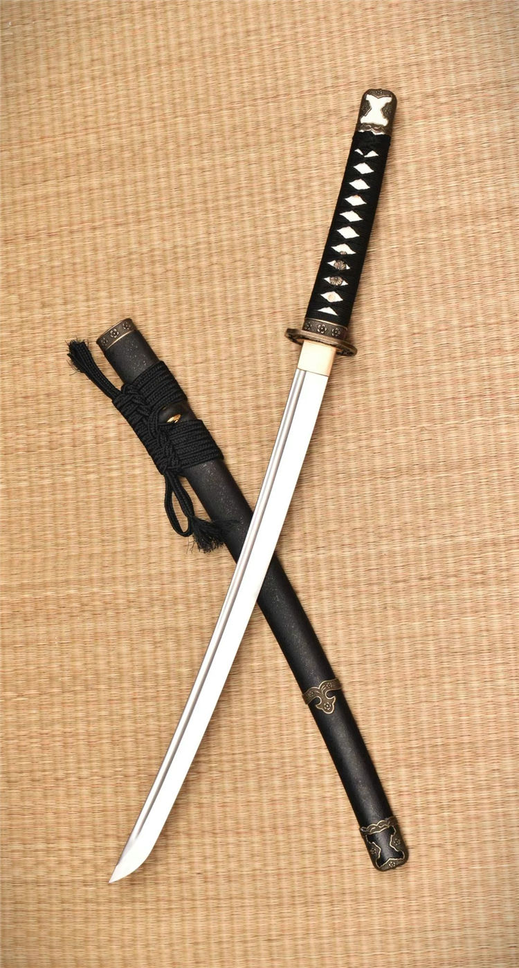尚古半太刀 全长:80cm 刃长:50.5cm 材质:1055钢锻造 手工开槽研磨,装具为锌合金,鞘实木喷漆缠宽下绪,纯铜刀镞,刀柄实木缠绳