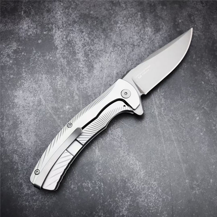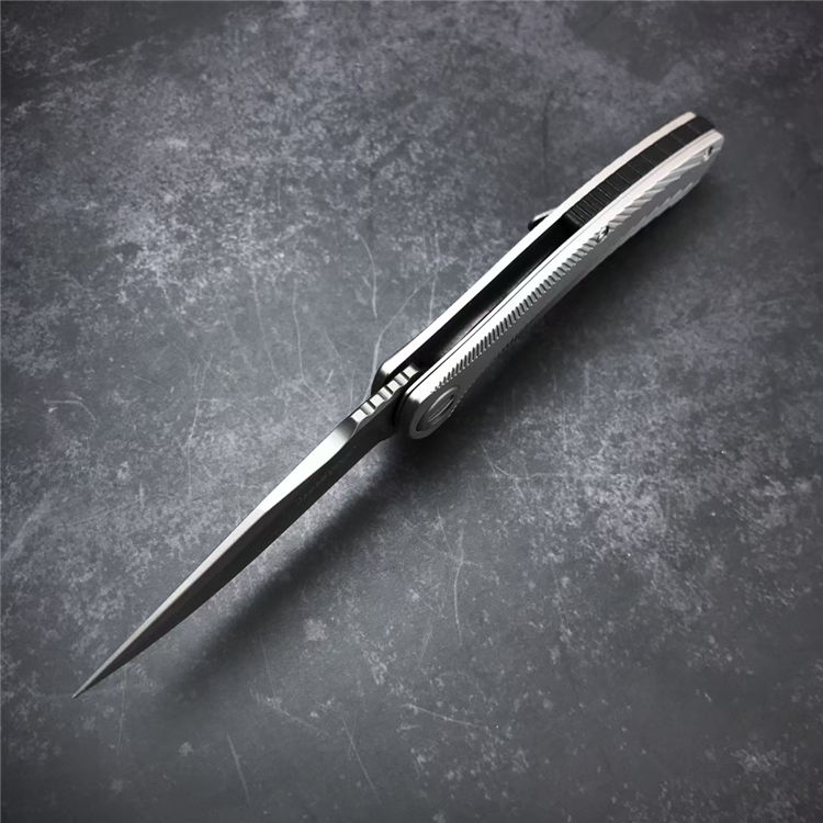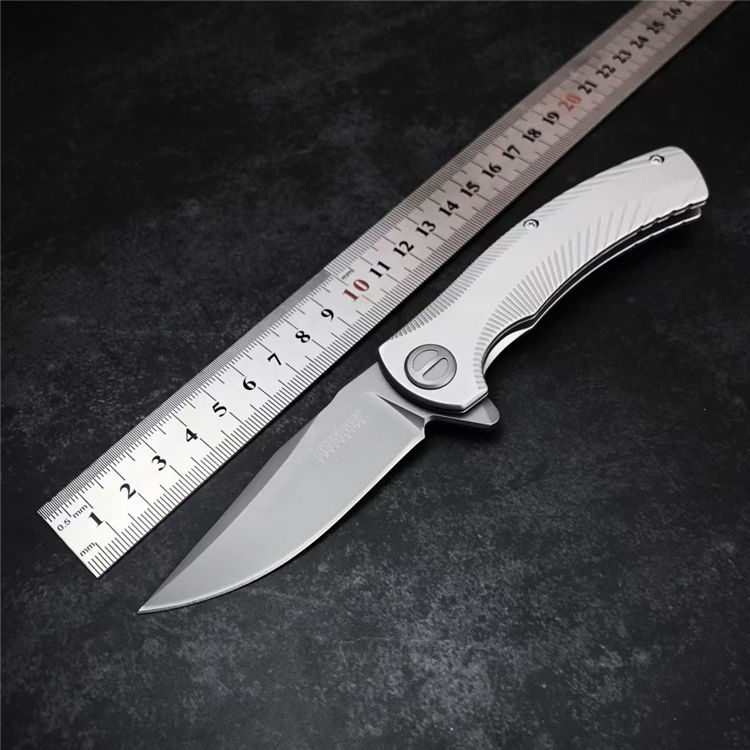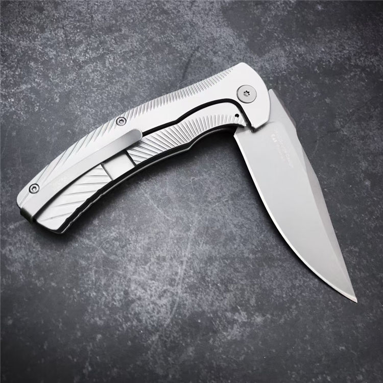 卡秀3490折刀 全长:18cm 刃长:7.5cm 柄长:10.5cm 刃宽:2.5cm 刃厚:4mm 刃材:8CR13MOV 硬度:58HRC 刀柄:全钢CNC电脑锣 表面:灰钛 重量:152克(含包装) 备注:带背夹,锋利 包装:原厂彩盒