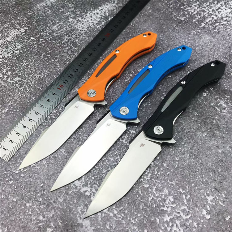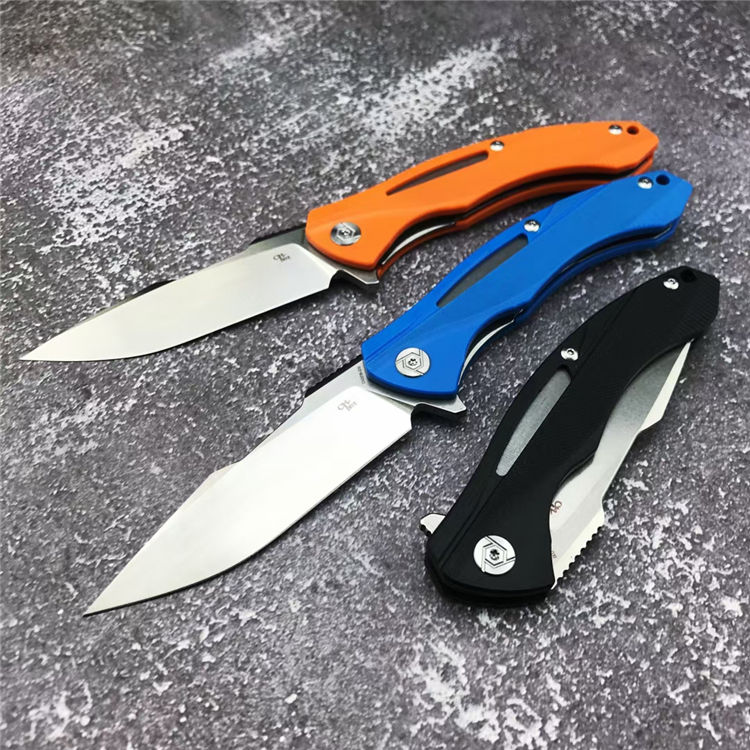 CH3519折刀 全长:22.5cm 刃长:9.5cm 柄长:13cm 刃宽:2.9cm(最宽处) 硬度:59HRC 厚度:0.38cm 柄材:G10手柄 重量:220克(含包装) 刃材:D2 其他:彩盒