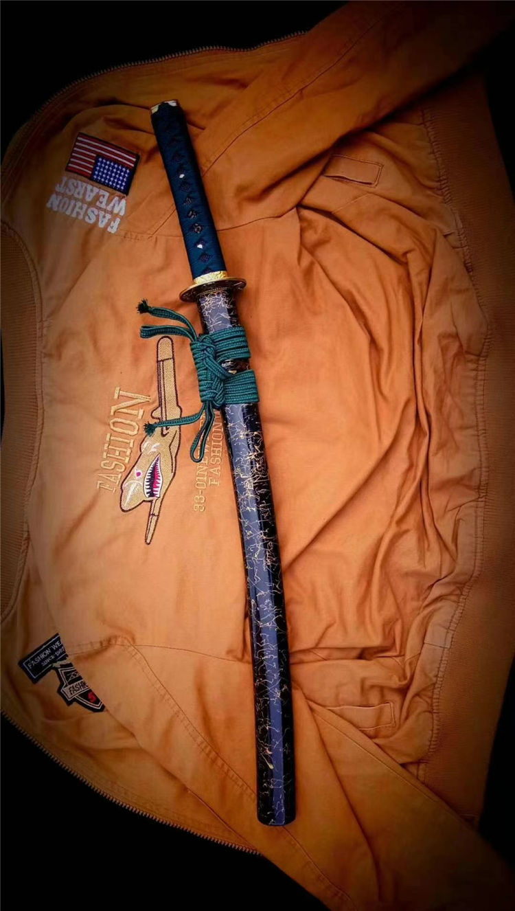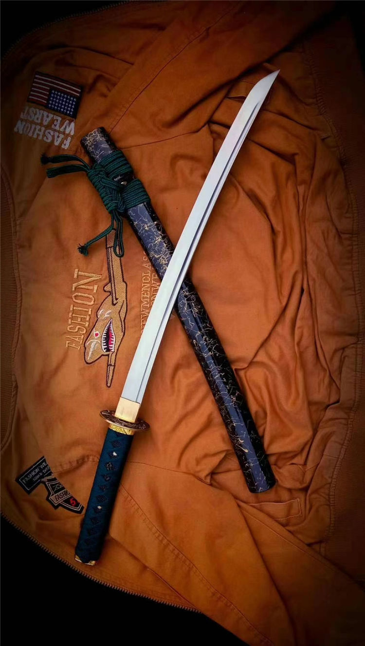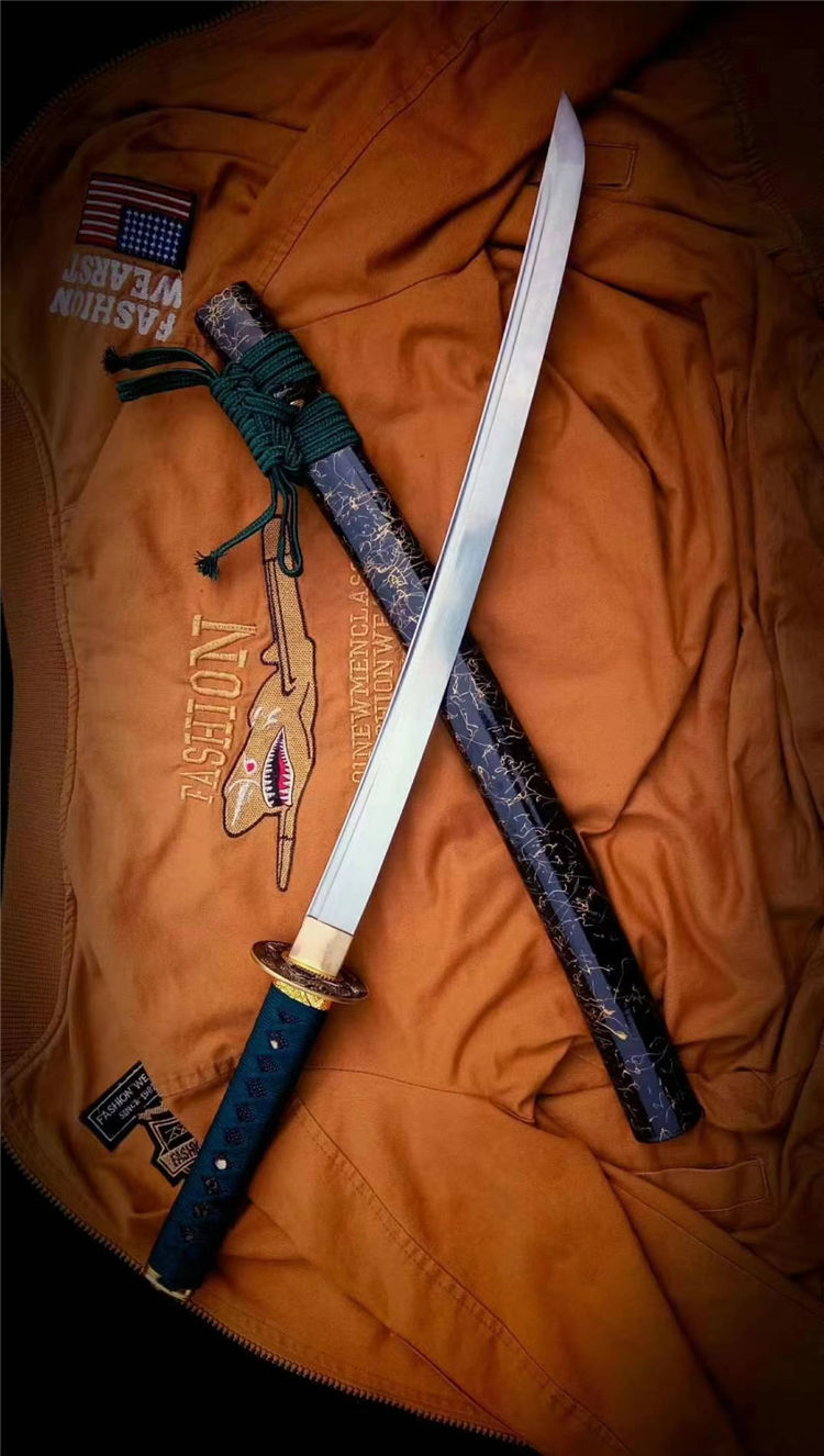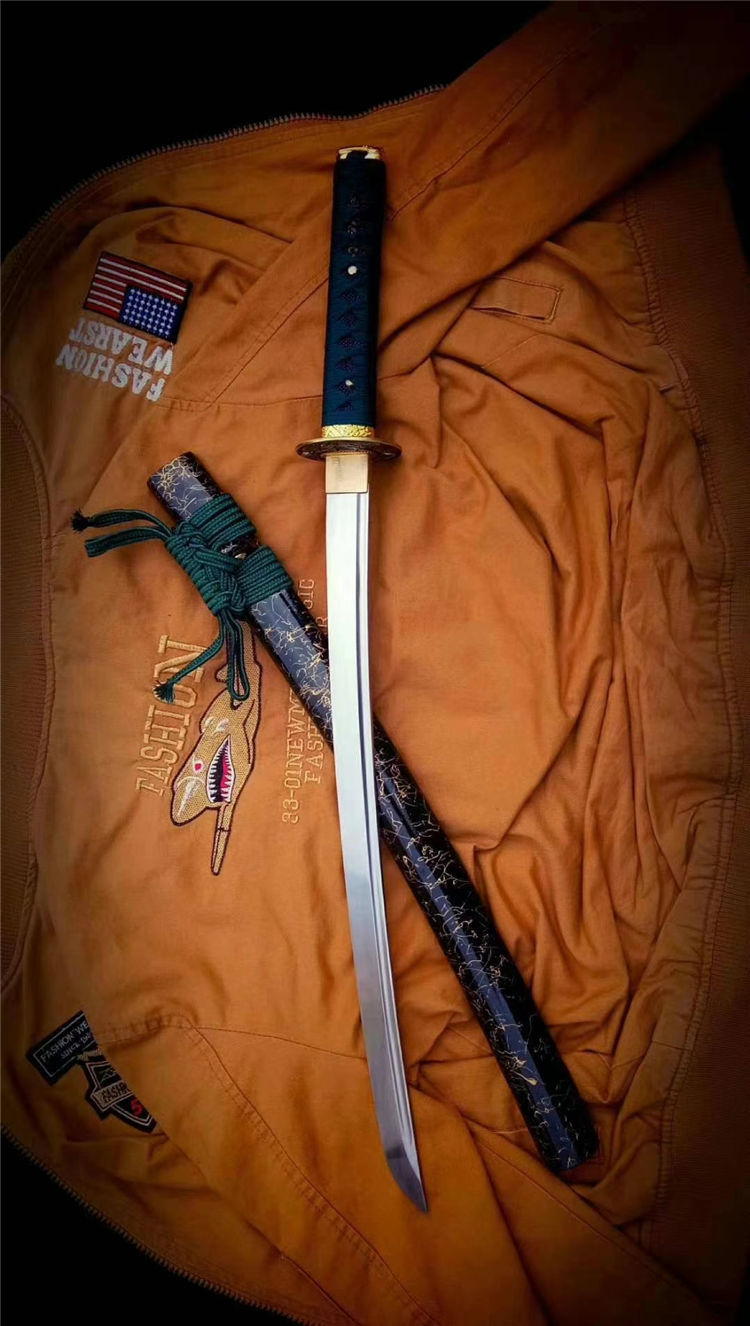名柳武士刀 全长:77cm 刃长:49.5cm 刃材:锻造1055钢 手工开槽,高性能,配纯铜刀镞,鞘为实木喷漆,手工合金配饰,手工产品以实际尺寸微基准