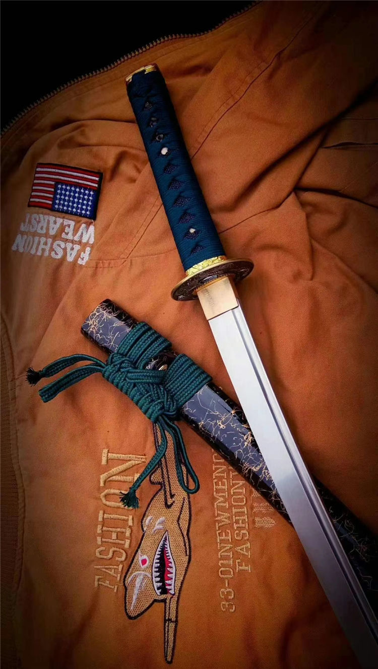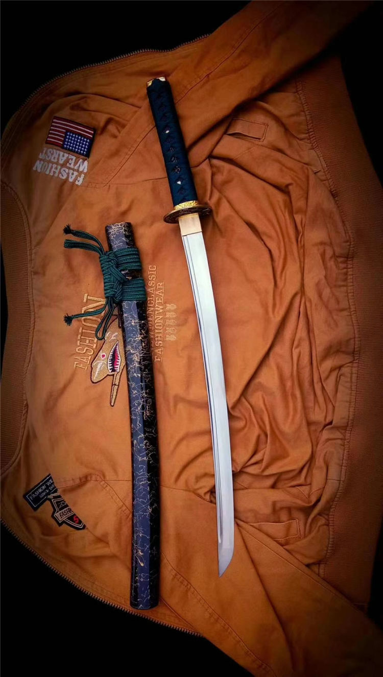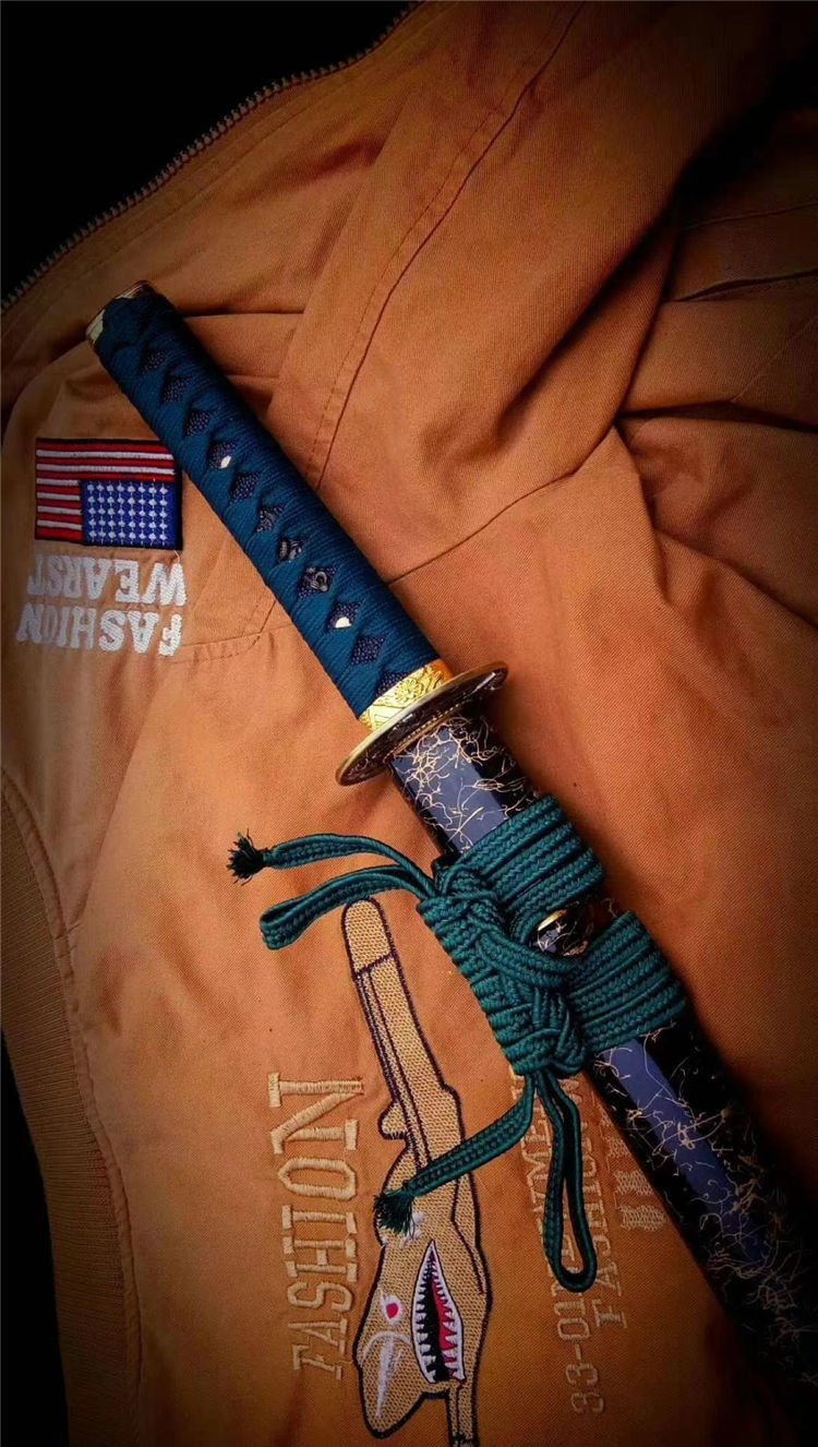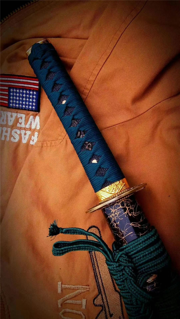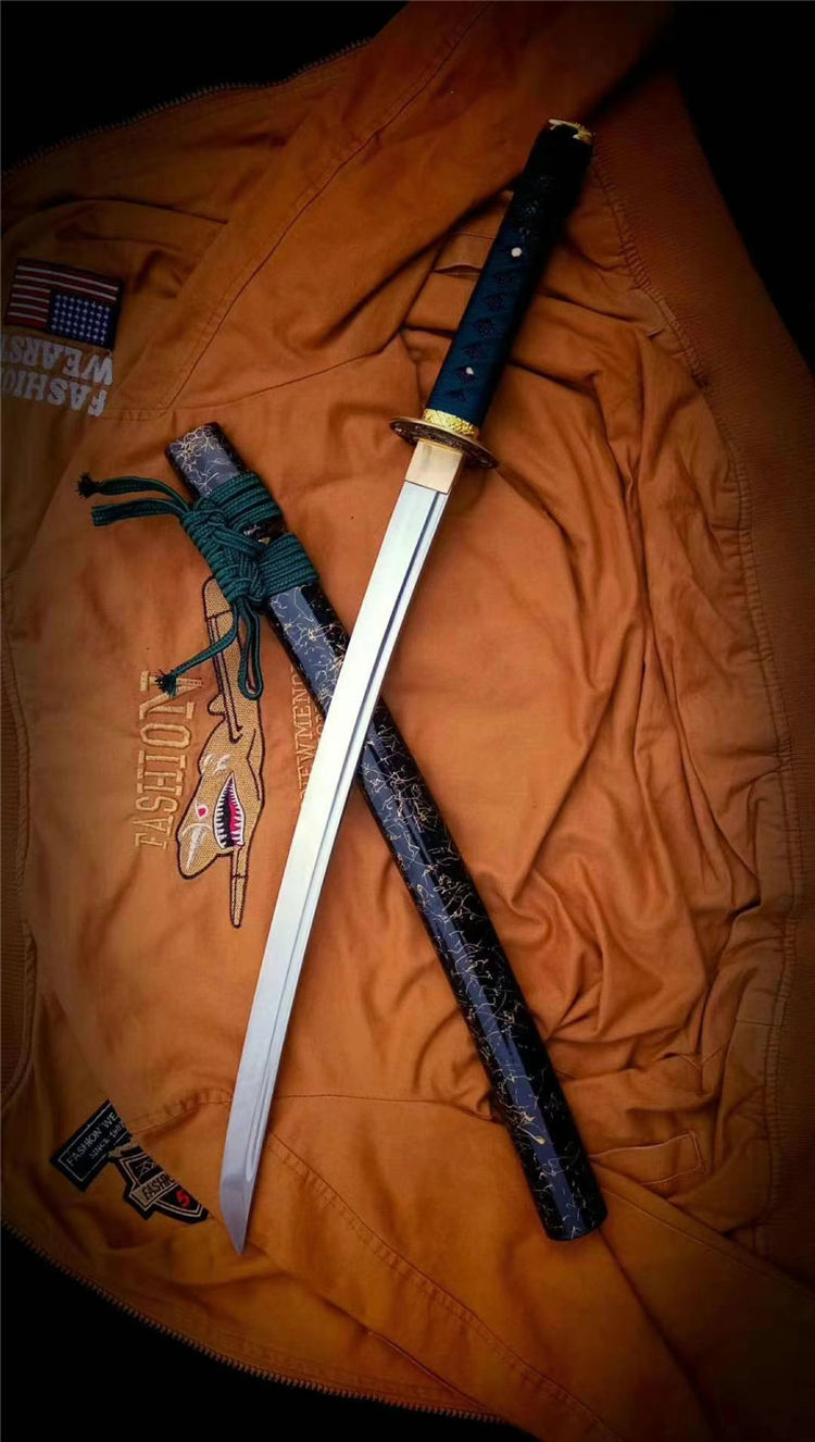 名柳武士刀 全长:77cm 刃长:49.5cm 刃材:锻造1055钢 手工开槽,高性能,配纯铜刀镞,鞘为实木喷漆,手工合金配饰,手工产品以实际尺寸微基准