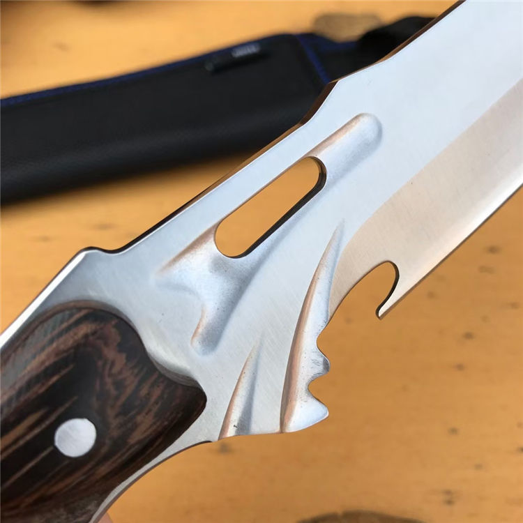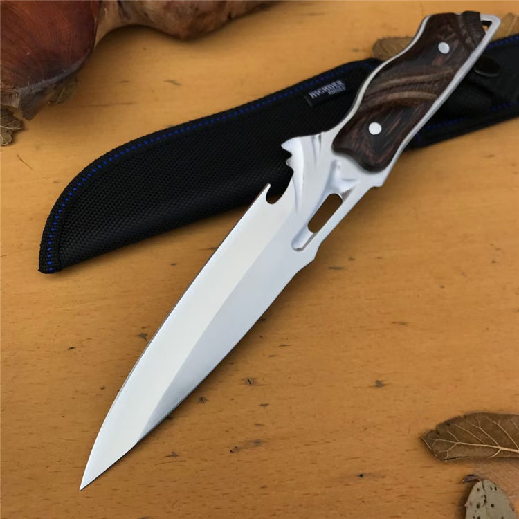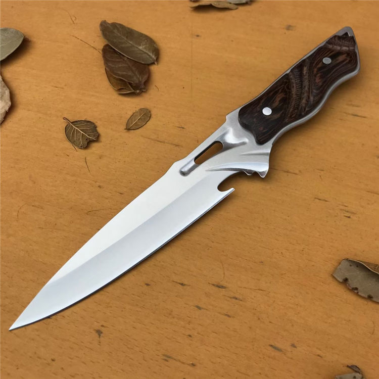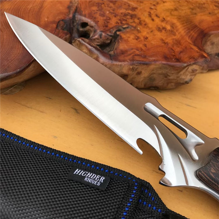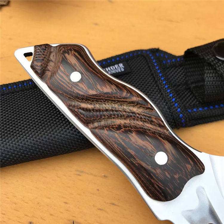 死神甲小直刀 全长:26.3CM 刃长:16.5CM 刃材:5CR13MOV 刃宽:1.9CM 刃厚:4MM 柄长:9.8CM 柄材:彩木 重量:235G 刀鞘:尼龙刀鞘