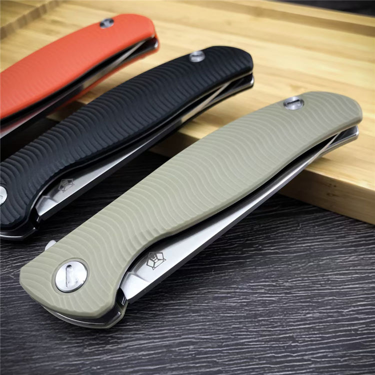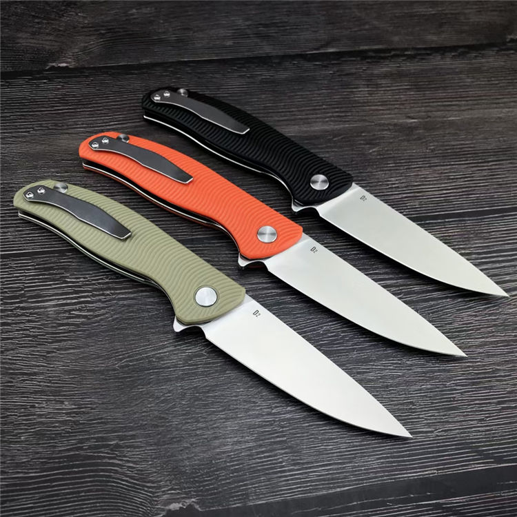 荒野熊头折刀 全长:22.2CM 刃长:9.5CM 刃材:D2 硬度:59 刃宽:2.7CM 刃厚:4MM 柄长:12.6CM 柄材:G10 重量:156G