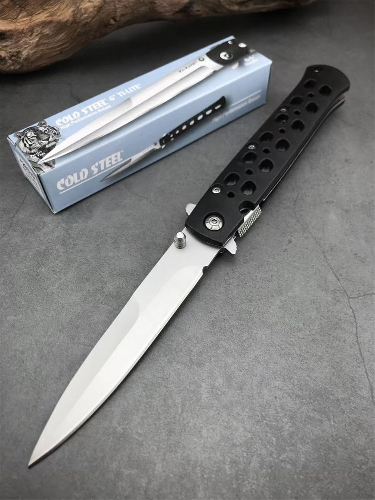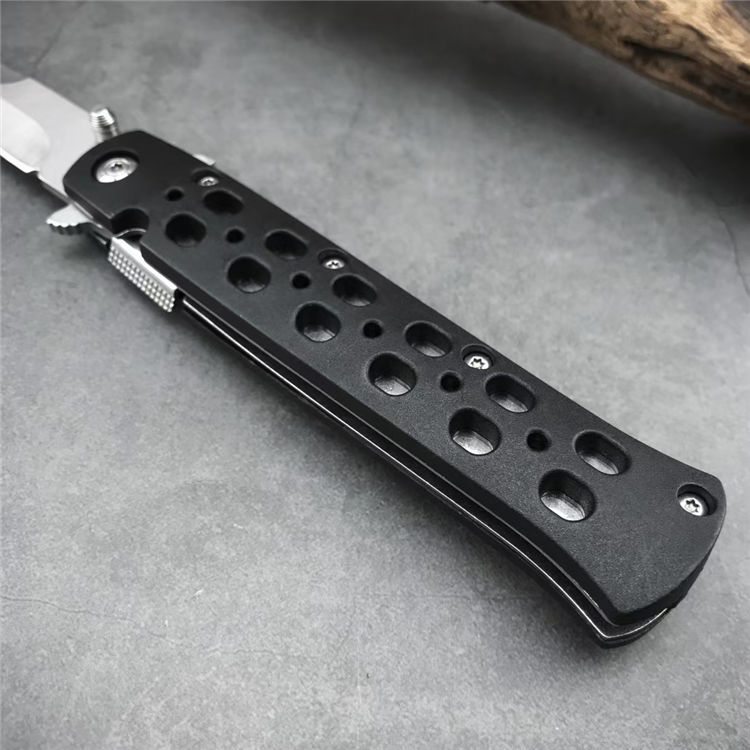新版冷钢26s折刀 全长:22.8CM 刃长:10.3CM 刃宽:1.8CM 刃材:440C 硬度:58 刃厚:3MM 柄长:12.5CM 柄材:尼龙波纤 重量:122G