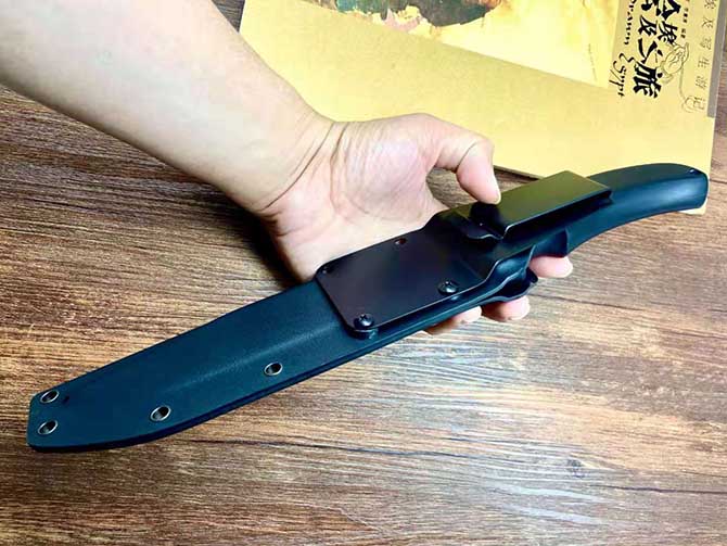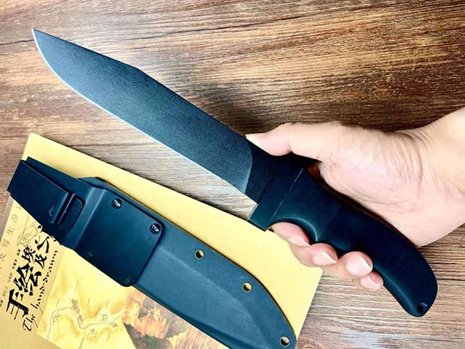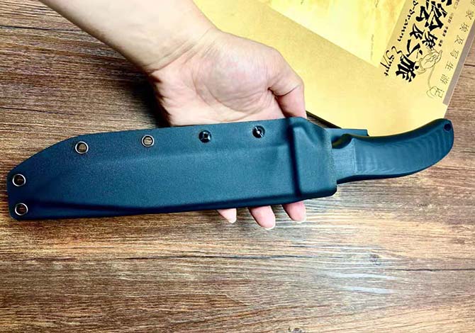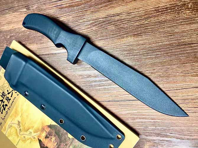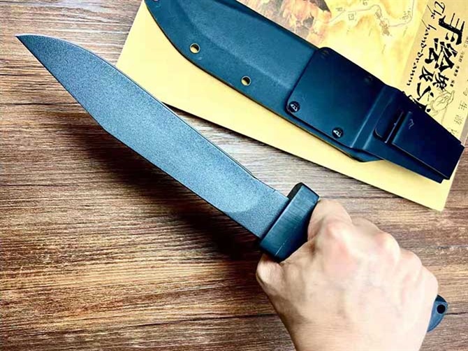 新款6.5厚疯狗直刀 全长:320mm有效刃长:165mm刃厚:6.5材料:三刃热处理O1钢表面:涂层特氟龙防刮涂层,一体龙骨硬度:60-61柄材:搭配黑色G10配:2.0厚板进口K鞘带钢夹刃材性能啥的这个不用多说了,使劲操就行,一把好刀