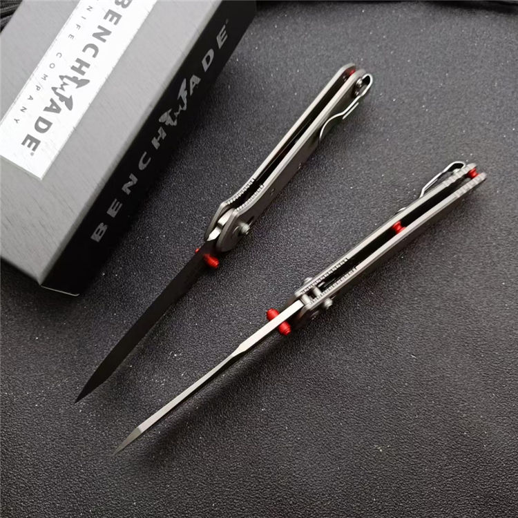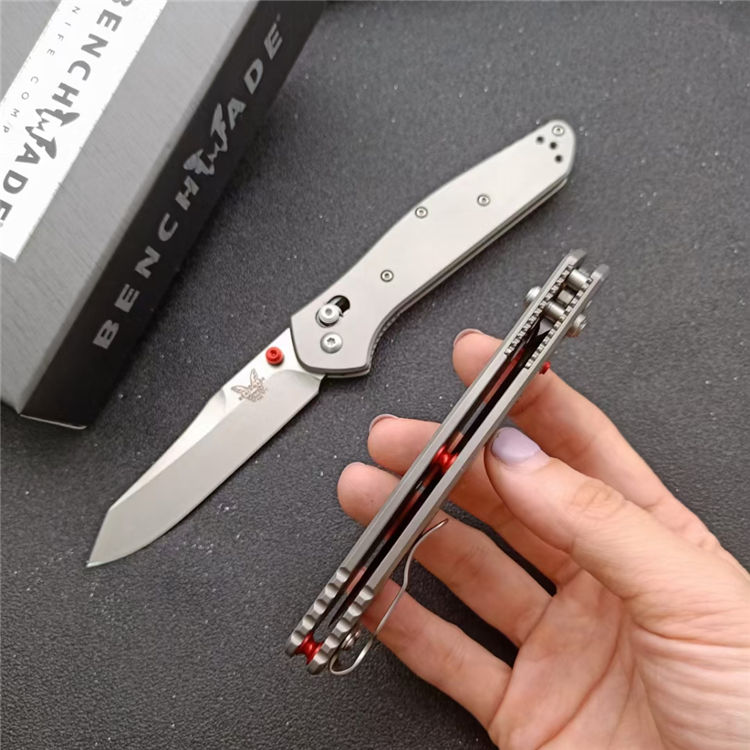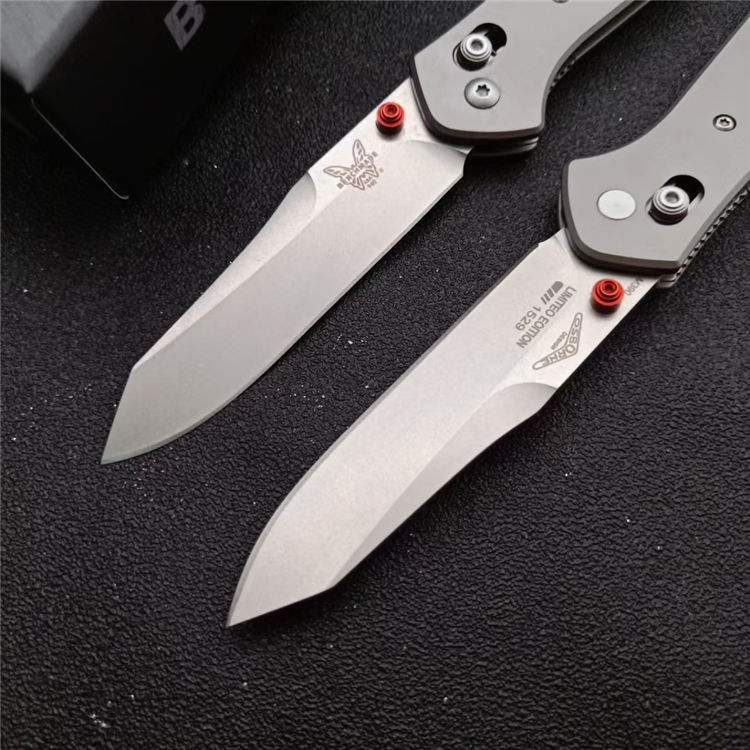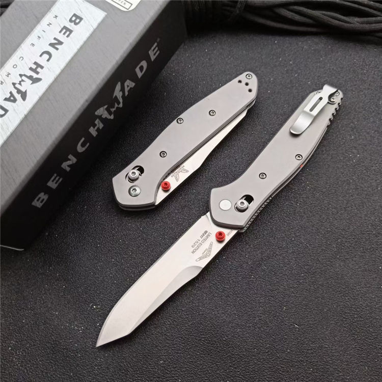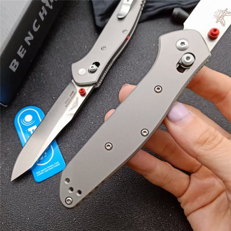 M390蝴蝶940折刀 型号:940-2001 全长:198mm 刃长:85mm 柄长:113mm 刃宽:2.1mm 刃厚:3.5mm 刃材:M390(上海博乐真空热处理) 净重:89.6g 重量:156g(含包装) 硬度:61HRC 表面:石洗 柄材:TC4钛合金