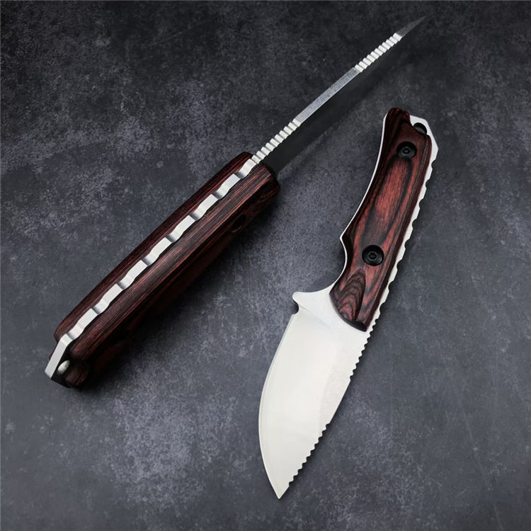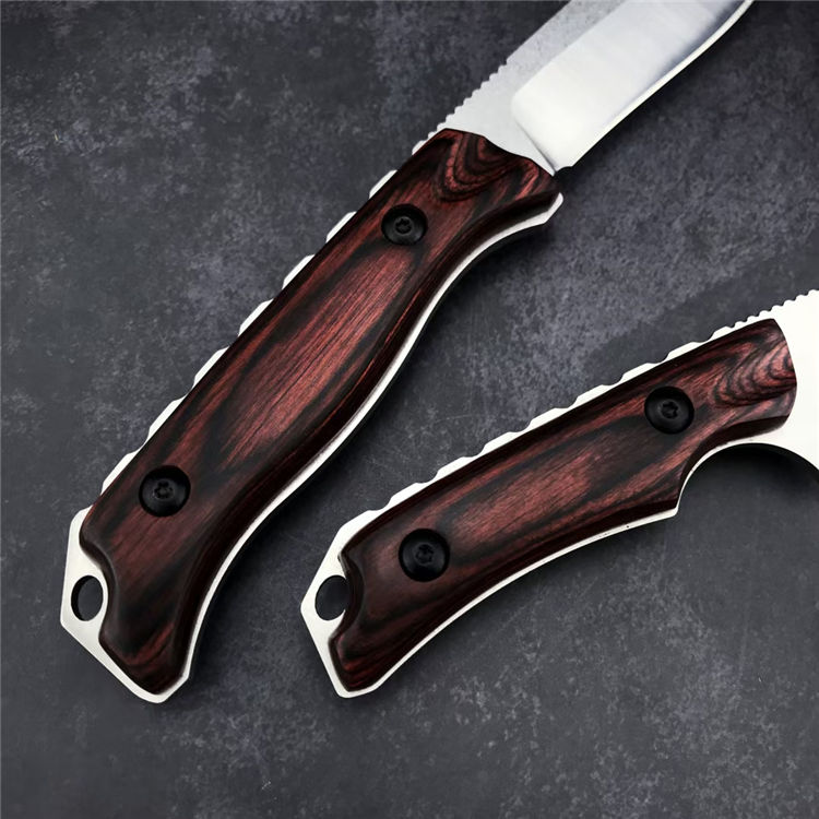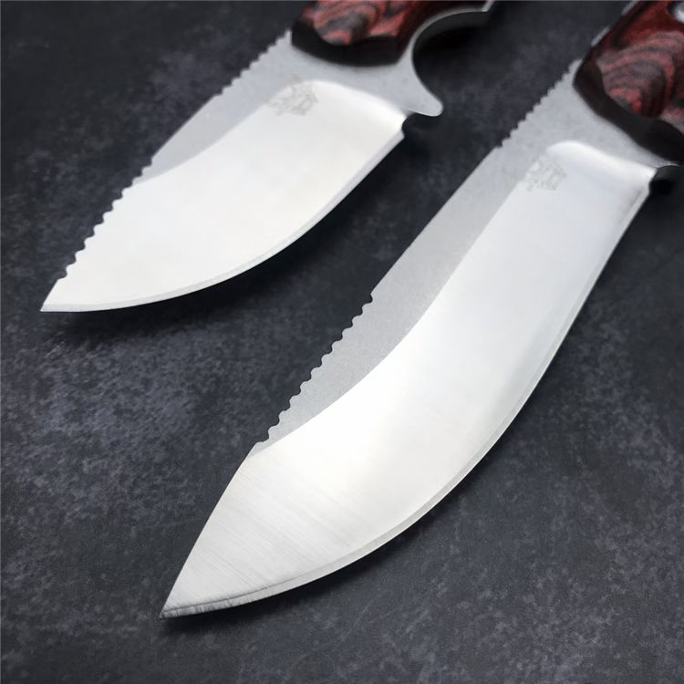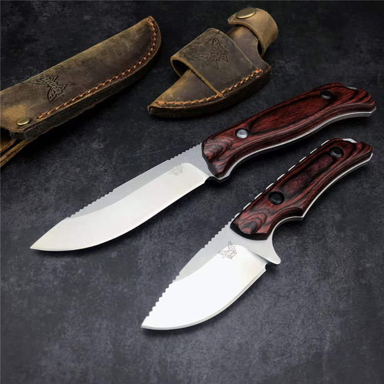 蝴蝶15002直刀 长度:10.67cm 厚度:3.048mm 手柄:16.76mm 材质:CPM-S30V不锈钢叶片 硬度:58-60HRC 重量:260克 总长:22.10cm 材料:皮革 蝴蝶15017 刃长:7.09cm 厚度:3.048mm 材质:CPM-S30V不锈钢叶片 硬度:58-60HRC 重量:136.76克 长度:16.31cm 护套:皮革