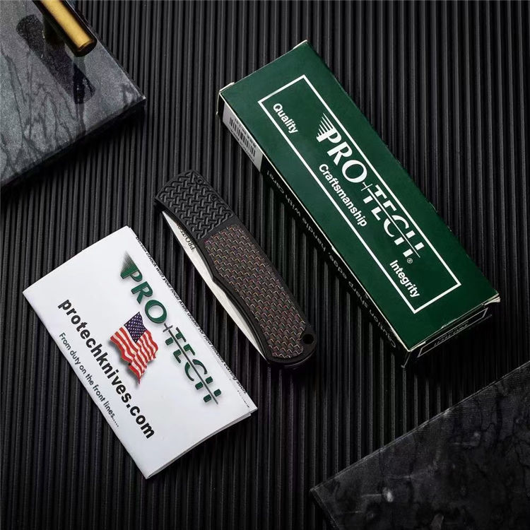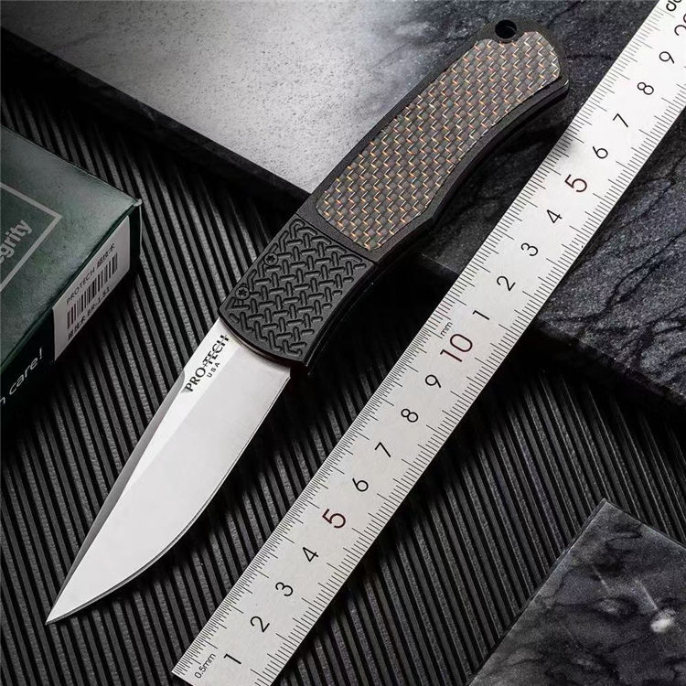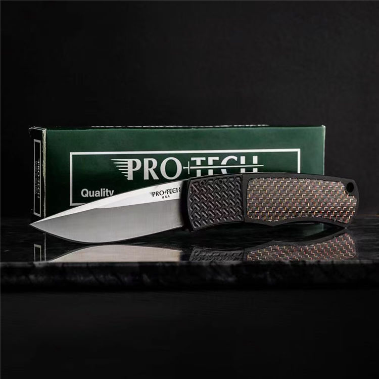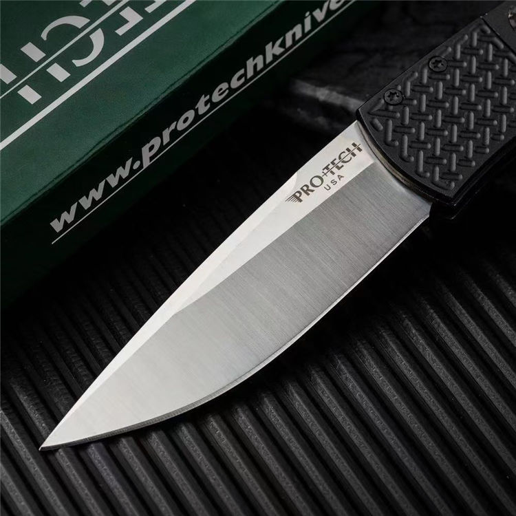 超技术魔法侧开跳刀 全长:180mm 刃长:78mm 刀厚:2.8mm 刃材:154-CM 柄材:航空铝合金+高级彩色碳钎维 总重:68g 表面:数控光面+高强度氧化黑 工艺:刀身采用精准的数控水磨处理,手柄整体采用数控电脑逻(CNC)线条处理