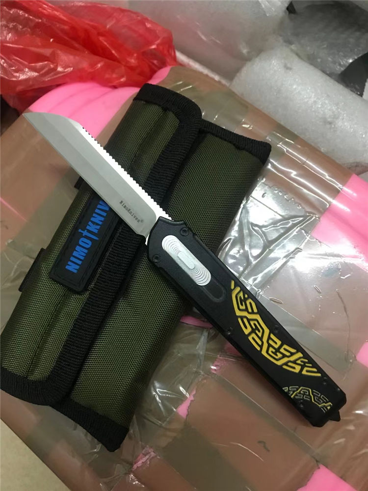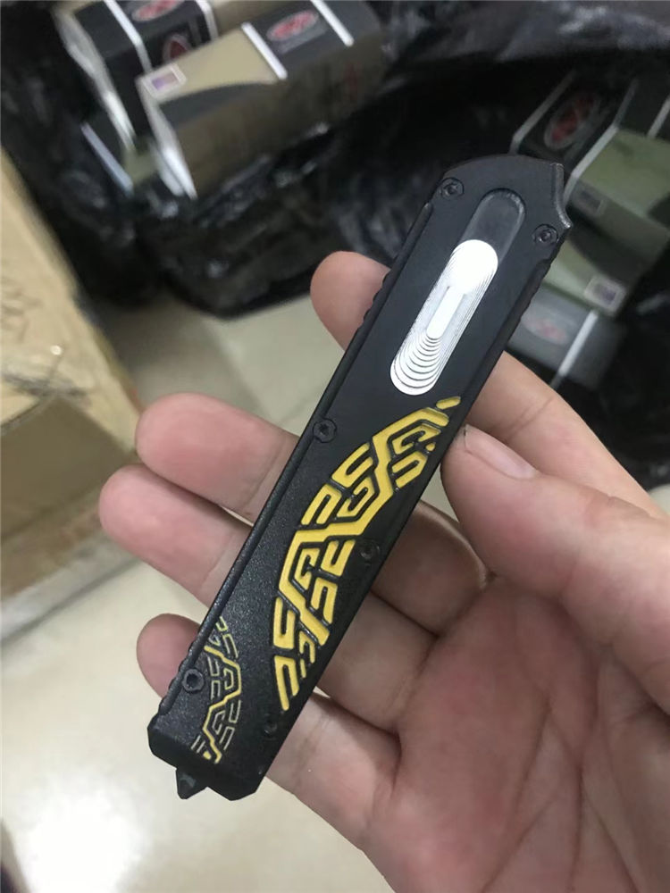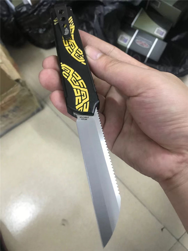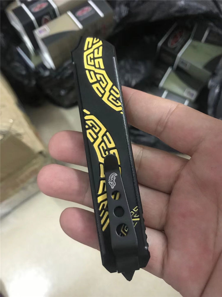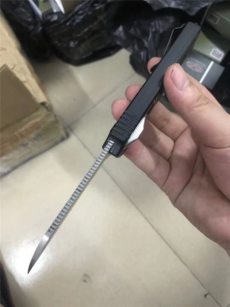 Slenderman黑版直出跳刀 全长:215mm 刃长:85mm 厚度:3.0mm 刀片:9CR18MOV 手柄:航空铝(T6-6061) 硬度:59-60HRC 热处理:真空热处理 处理:氧化+ 3D打印 尾巴:玻璃撞击器后 背夹:不锈钢 净重:92g