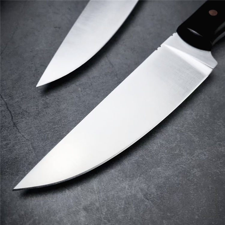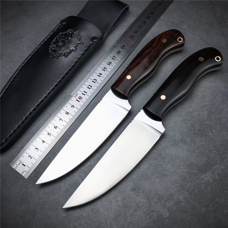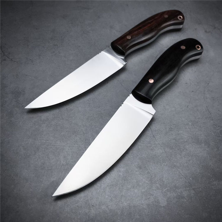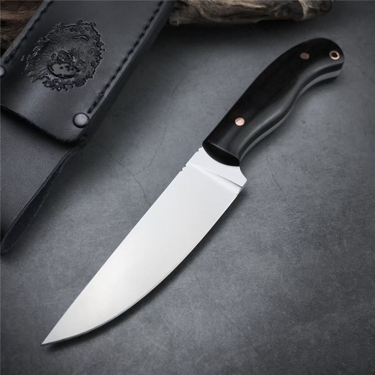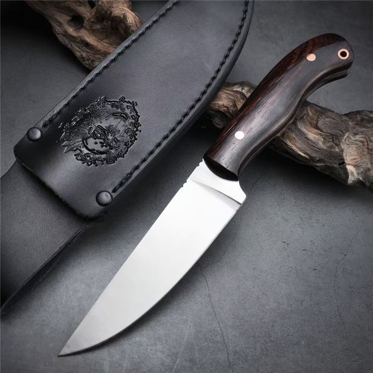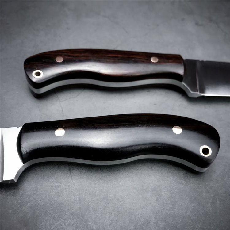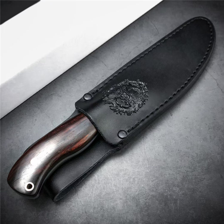 复刻版美国温克勒直刀 总长:235mm 刃长:115mm 柄长:120mm 钢材:DC53钢 硬度:60RHC 开刃:二次开刃,以锋利度为主 柄材:两种黑檀木和黄檀木柄材+铜钉 手柄:AB胶加固 刀鞘:牛皮鞘