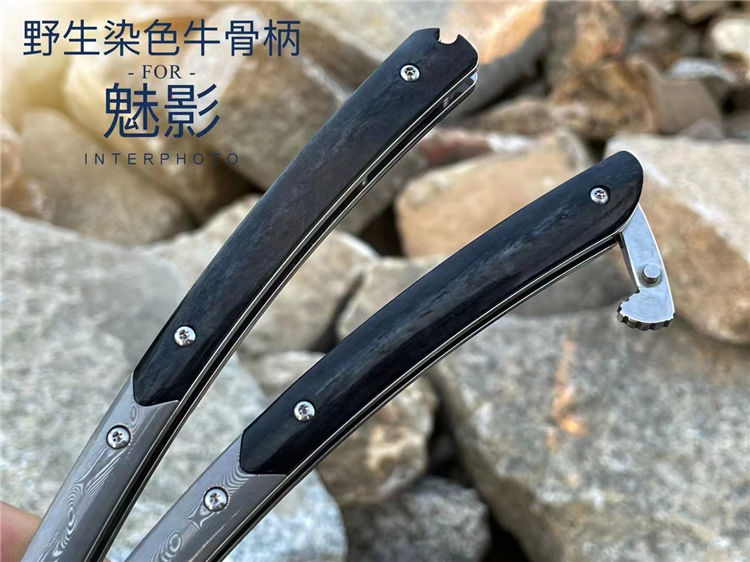 柄材:野生牛骨染色效果与大马士革钢