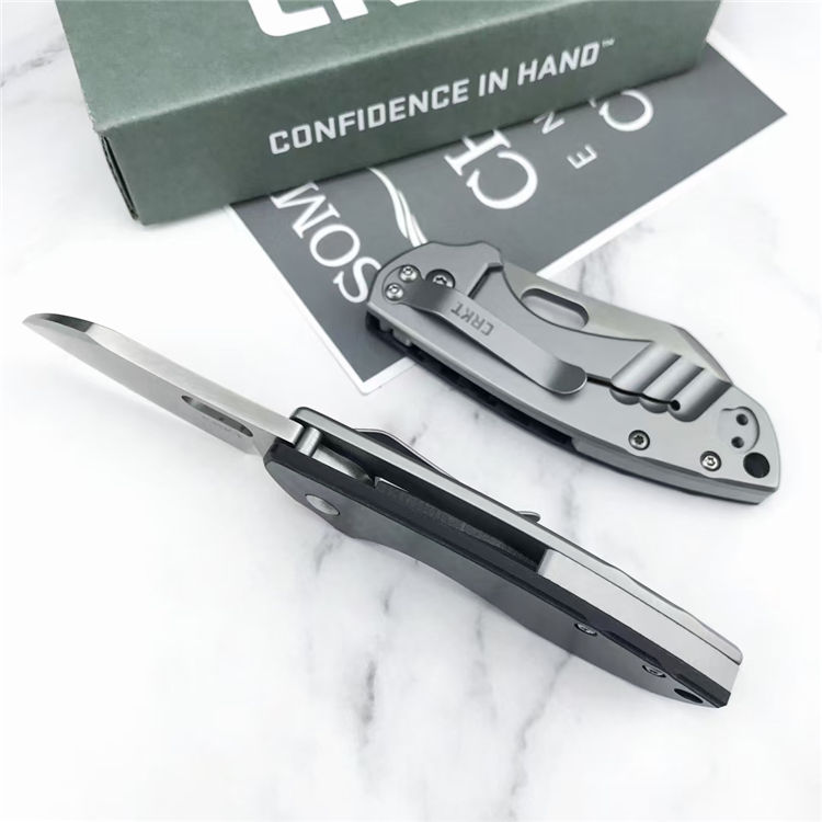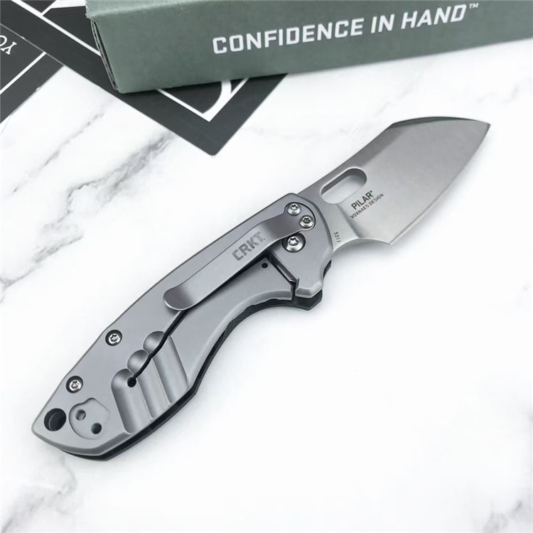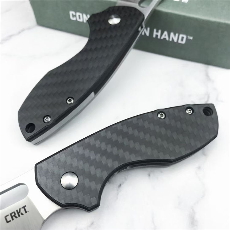 CRKT碳纤柄5311折刀 全长:14.9CM 刃长:6CM 刃宽:2.7CM 刃材:8Cr13MoV 硬度:60 刃厚:4MM 柄长:8.9CM 柄材:不锈钢+碳钎维 重量:105G