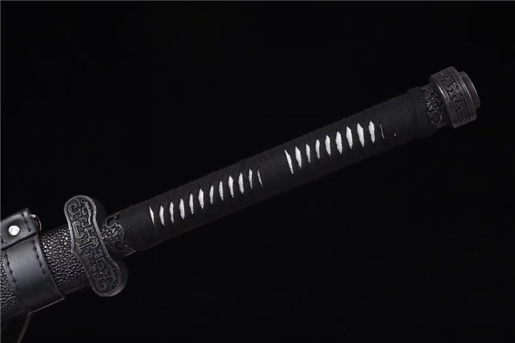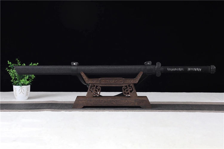 黑今绣春刀 全长:100cm 刃长:72cm 柄长:29cm 刃宽:3.8cm 刃厚:0.50cm 材质:高锰钢特制 全重:1.55kg 净重:1.30kg 镇宅辟邪收藏,精美摆设,赠送佳礼,工艺锋利版、鞘材质,青皮包皮