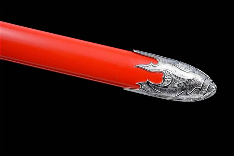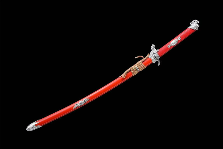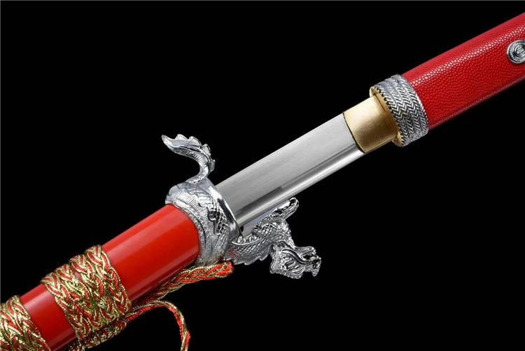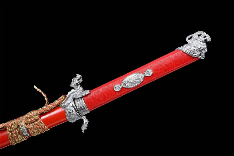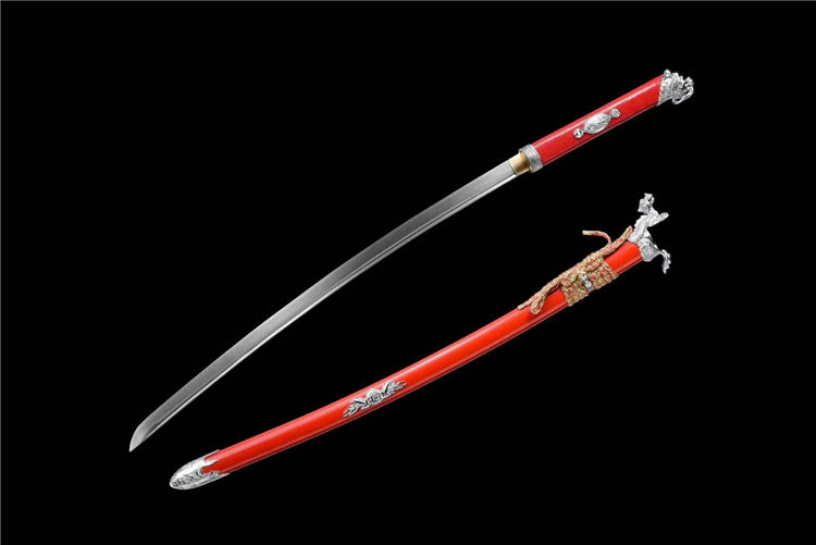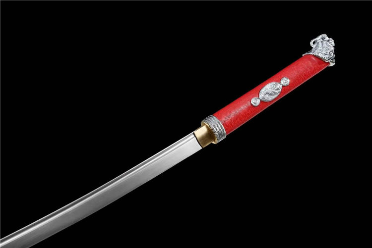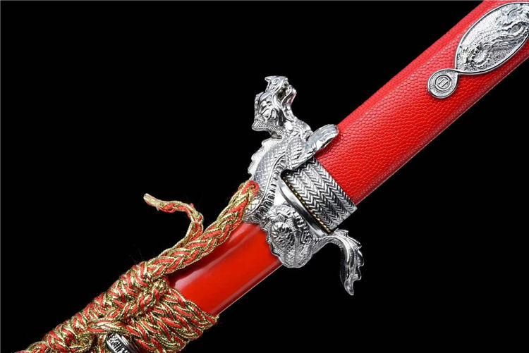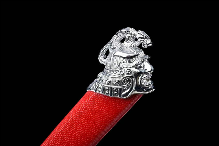 开槽研磨,鞘为铝制烤漆,柄包皮,雕刻龙武士形象装具