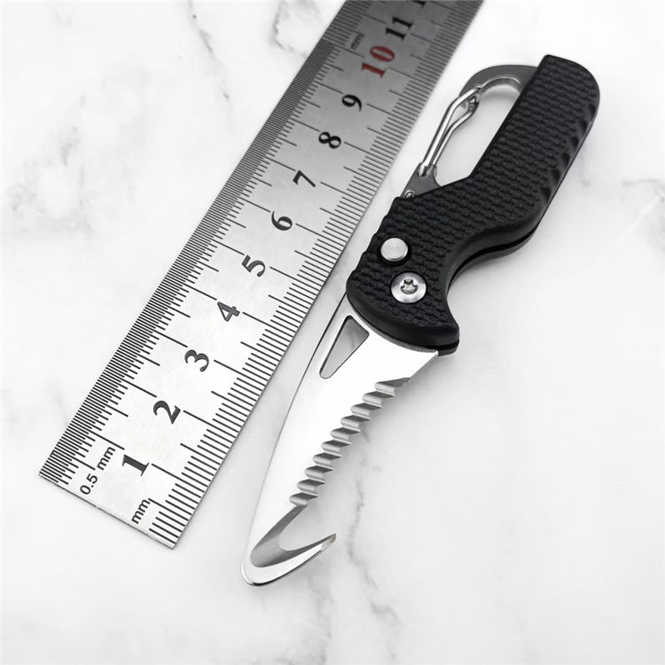 蝎子跳刀 全长:10.9CM 刃长:4.5CM 刃宽:1.3CM 刃材:5CR13MOV 硬度:58 刃厚:2MM 柄长:6.4CM 柄材:尼龙波纤工程塑料 重量:28G