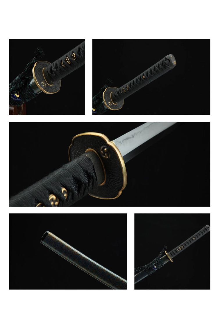 工艺:覆土烧刃,手工推磨,因为刃纹独特,纹路清晰,所以每把刃纹做不到一模一样