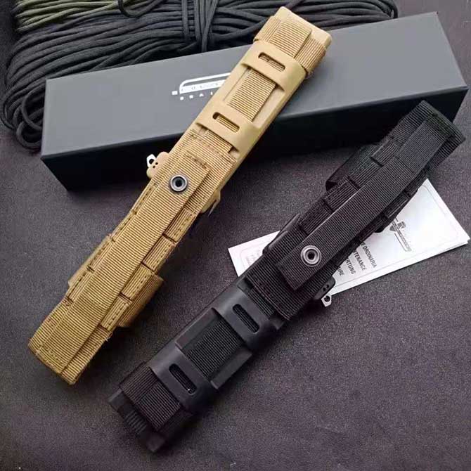 这是一款战术直刀,被设计成适用于野外环境的多用途刀具,“联络C”的刀身采用9cr18mov钢制造硬度达到59-60HRC,采用直刃设计,两侧各有一条血槽,既减轻了重量,又不至于削弱强度,刀身采用改良的矛头式,上部有四分之三长度的假刃。刀刃后方就是直角形的护手,能够有效保护大力使用时握持手的安全,MOLLE兼容护套由防震尼龙制成,具有避免震动噪音的系统,配备两按钮安全翻盖和灵巧的可逆第二级固定系统:只需按下扳机即可解锁出刀,刀鞘用途广泛可以安装到战术背心的MOLLE通用接口上,或者背包等具有相同接口的各种装具上