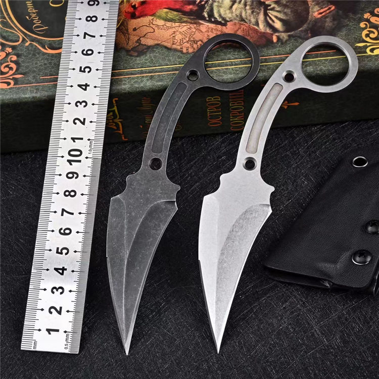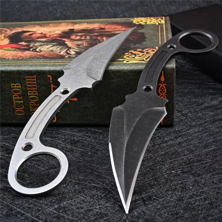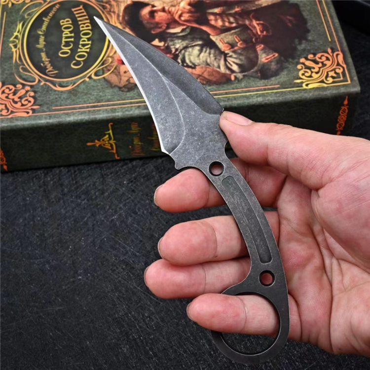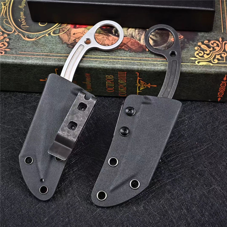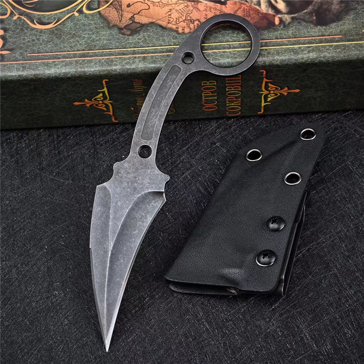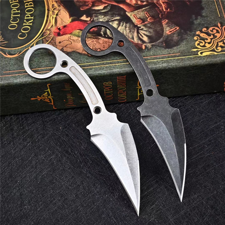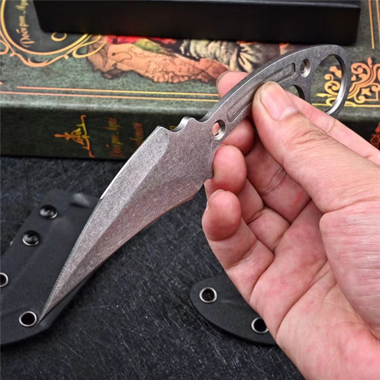 暗箭爪刀 总长:179mm 刃长:80mm 柄长:99mm 刃厚:3.0mm 刃宽:35mm 净重:58g 毛重:150g 钢材:D2 柄材:D2 硬度:58-60HRC 表面处理:石洗/沧桑石洗 包装:黑色礼品盒