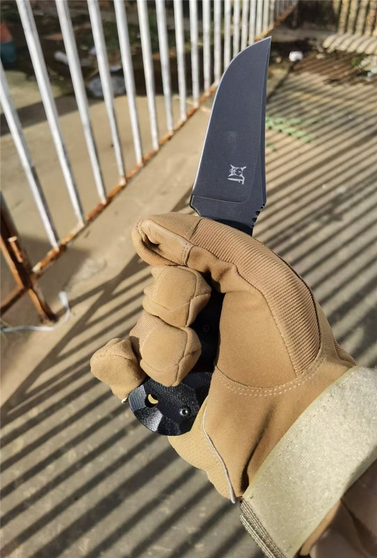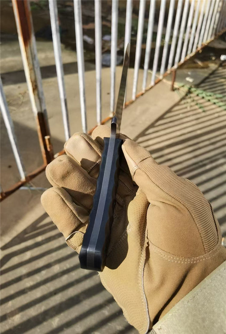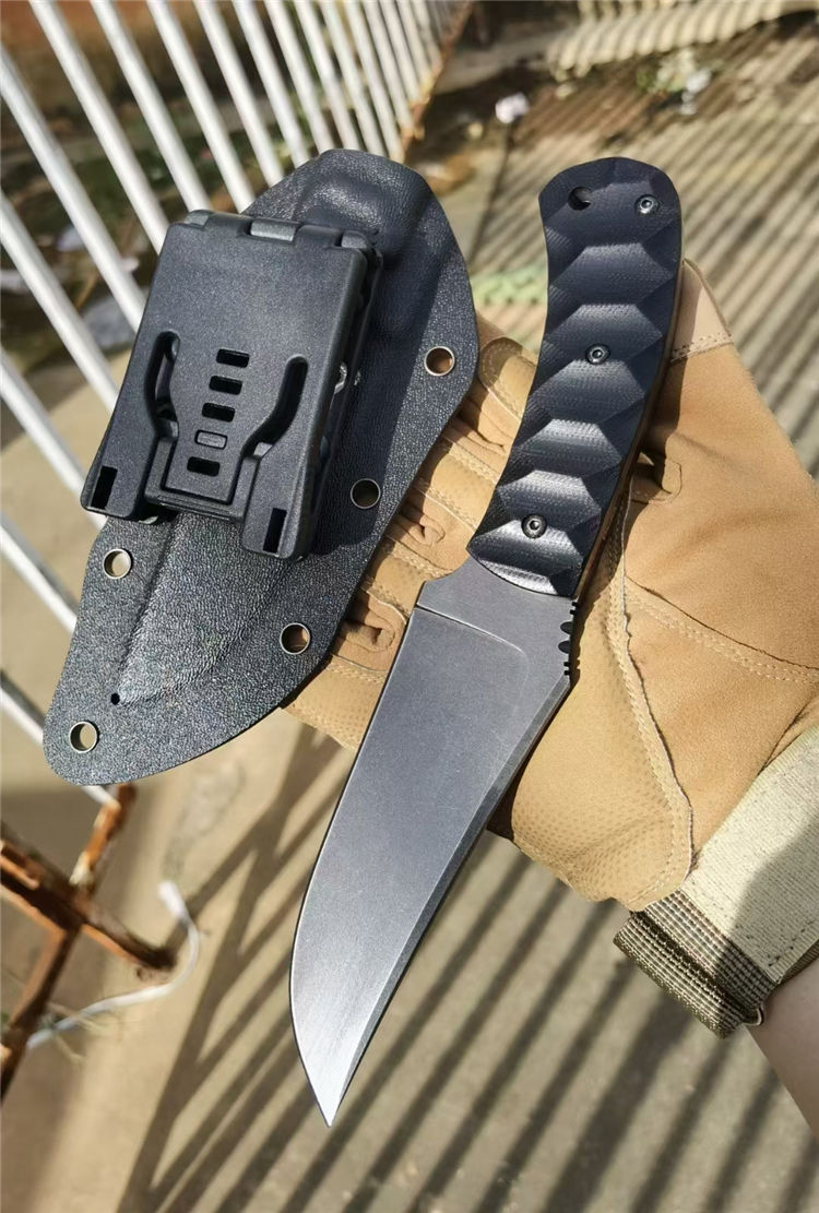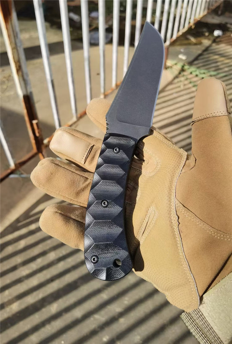 真空热处理,g10柄刻大石坑纹。手感舒适,经久耐用手柄减重,沧桑黑色刀条防锈兼顾美感,是一款经典的猎刀生存型小直