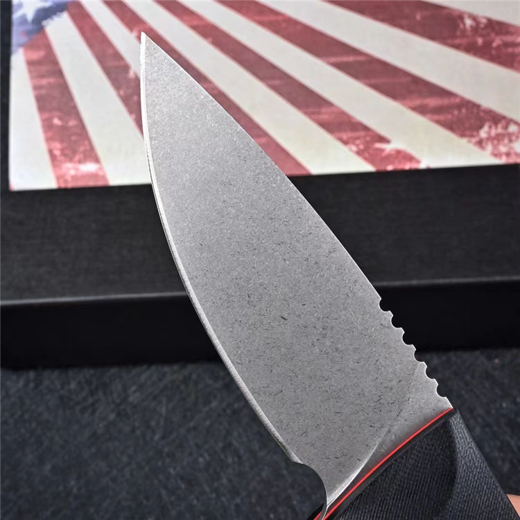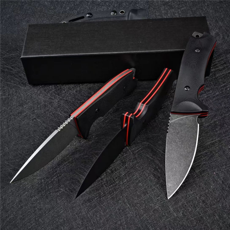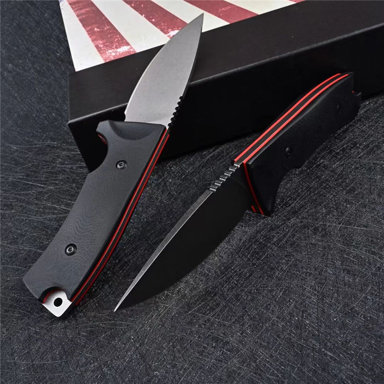 黑霸直刀 全长:225mm 刃长:95mm 柄长:126mm 钢材:日本进口VG10 柄材:手柄双色G10,表面CNC曲面狐度加工 刀厚:3.5mm 刃宽:34mm 硬度:60-61HRC 表面处理:白色石洗,黑色石洗,镀钛,三色可选 开V:精准数控水磨大平磨开V 开刃方式:二次开刃 净重:240g 毛重: 440g(包含盒子和刀套) 刀鞘:kydex鞘 包装:精美包装盒子