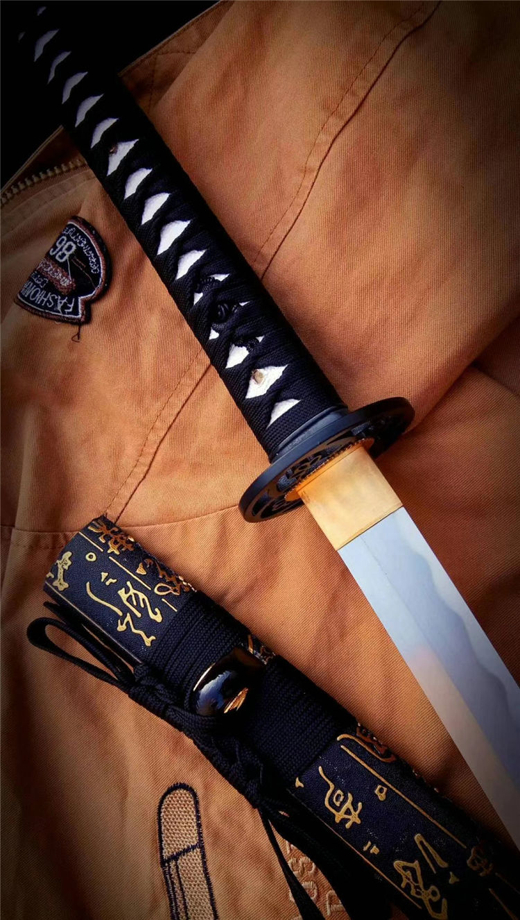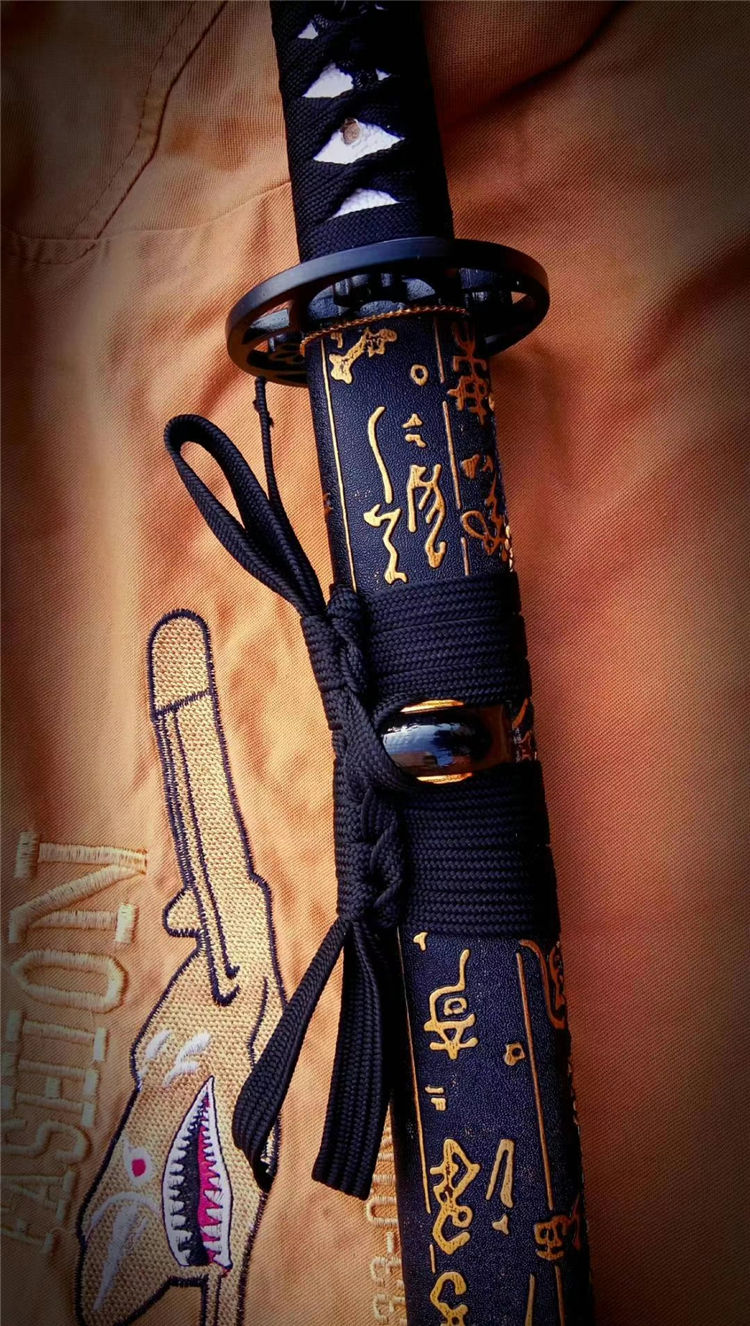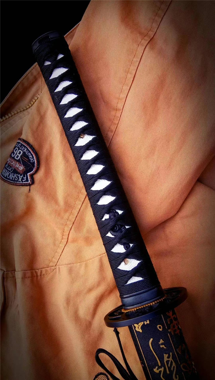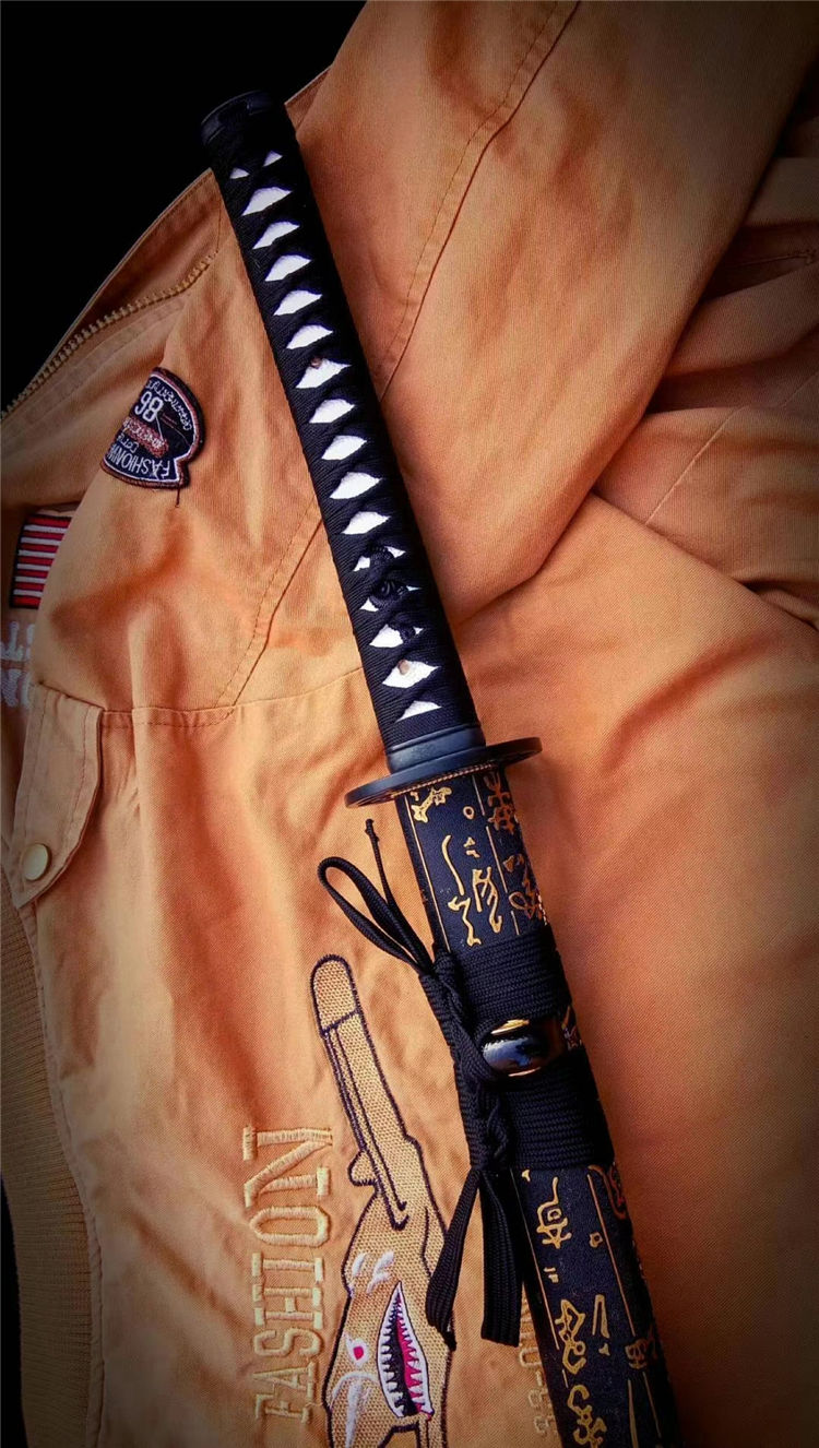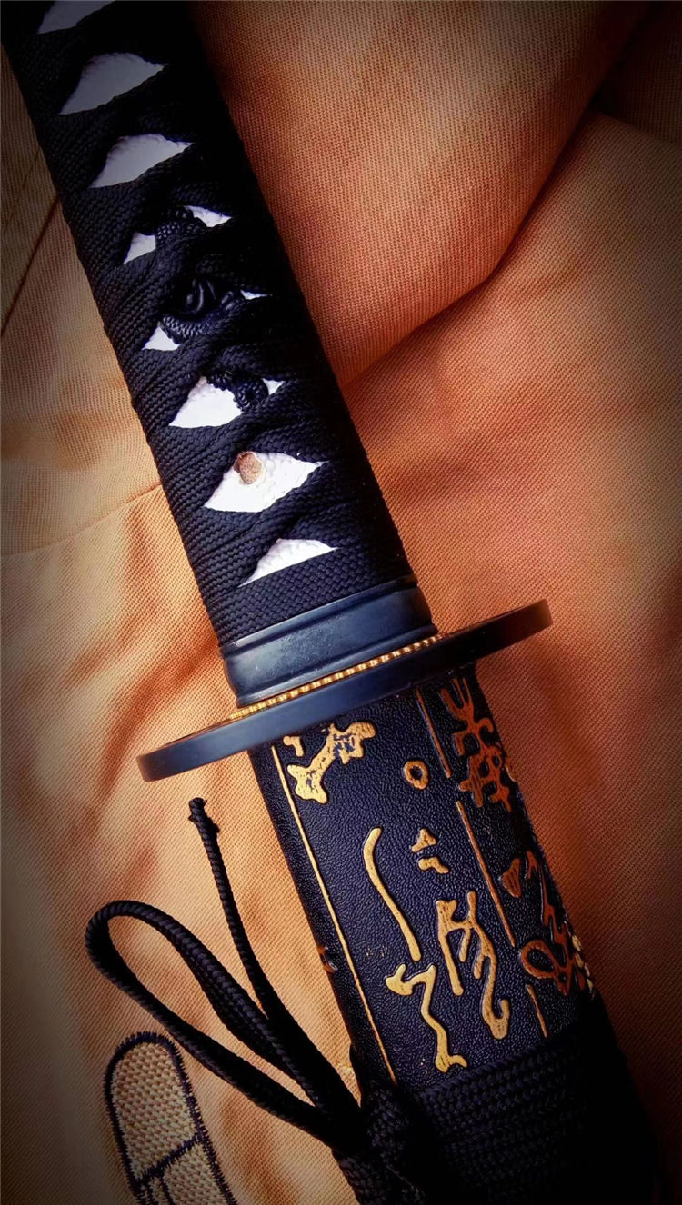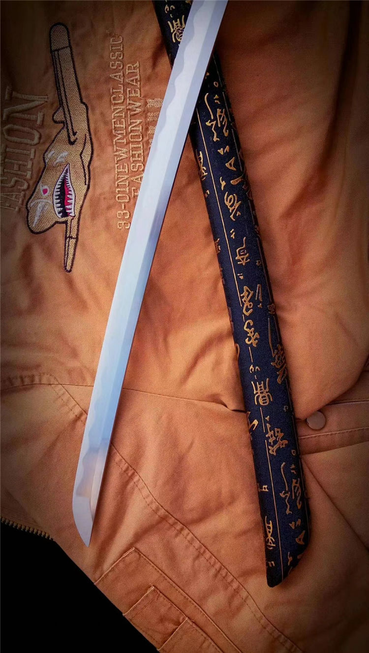 一文字武士打刀 全长:103cm 刃长:71cm 刃材:1050钢 高性能,刀鞘为实木上漆,手工合金配饰,手工制作,手工产品以实际尺寸微基准