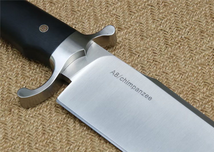 博尔特黑猩猩直刀 全长:410mm 刃长:276mm 柄长:133mm 刃宽:52mm 刃厚:6.8-6.9mm 刃面:精细砂光处理 类型:以锋利度,重砍度,韧性保持度和防锈性出色 开刃方式:二次开刃 刃材:国标A8 热处理:真空淬油热处理 硬度:60-61HRC 柄材:黑色G10,CNC成型和手工处理+防滑槽纹 包装:精美黑纸盒+护刀油+伞绳 净重:720克 刀鞘:配置美国进口K鞘+头层牛皮带扣