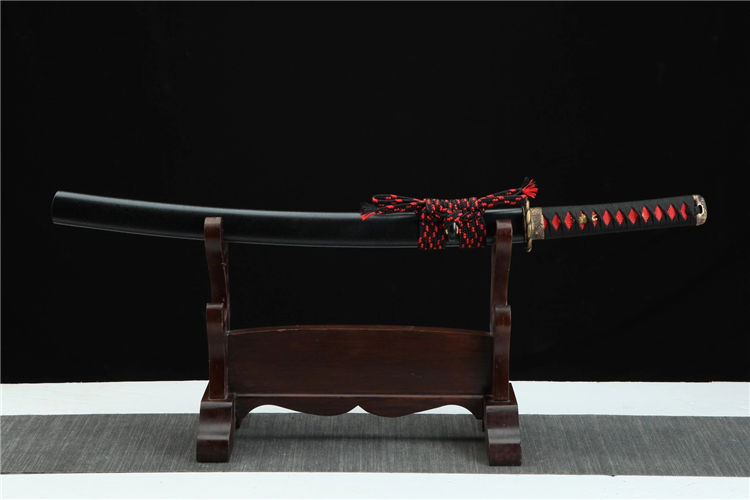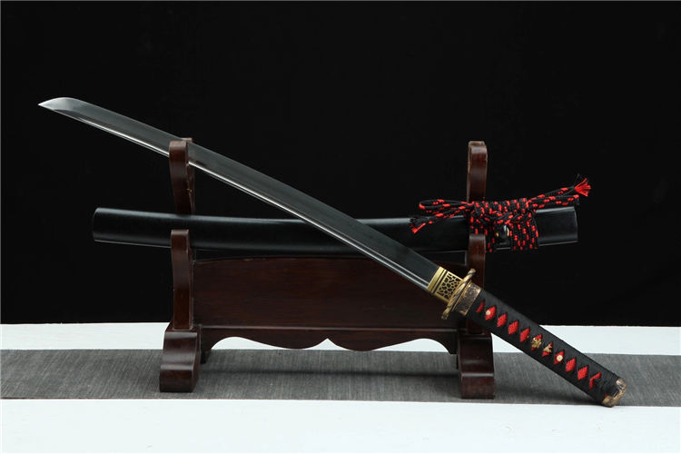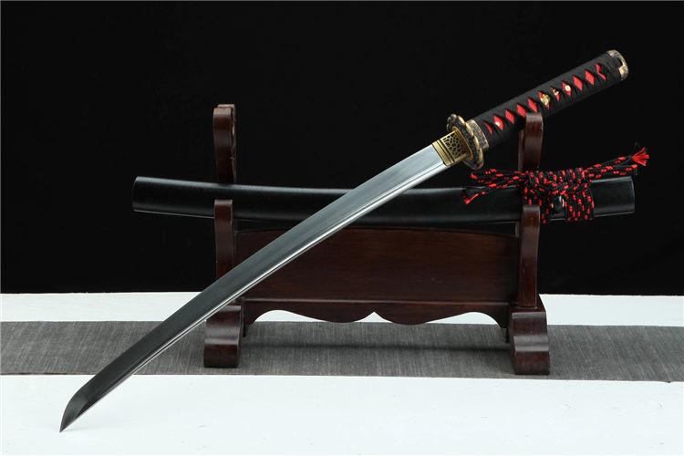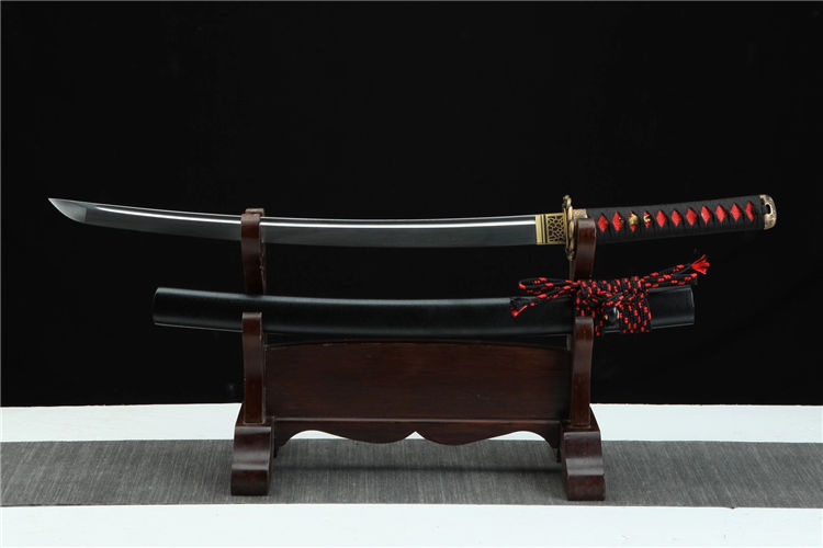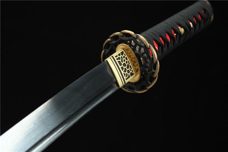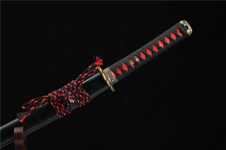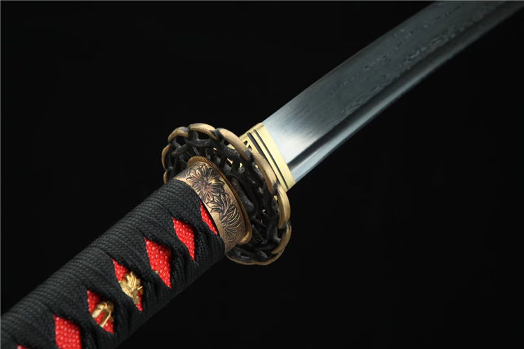 花环武士刀 总长:78cm 刃长:51cm 柄长:20cm 刃宽:3.2cm 刃材:百炼钢 工艺:油淬精磨 柄材:仿鱼皮(可拆卸) 刀鞘:油漆鞘 装具:纯铜做旧 配置:锦盒/油/布