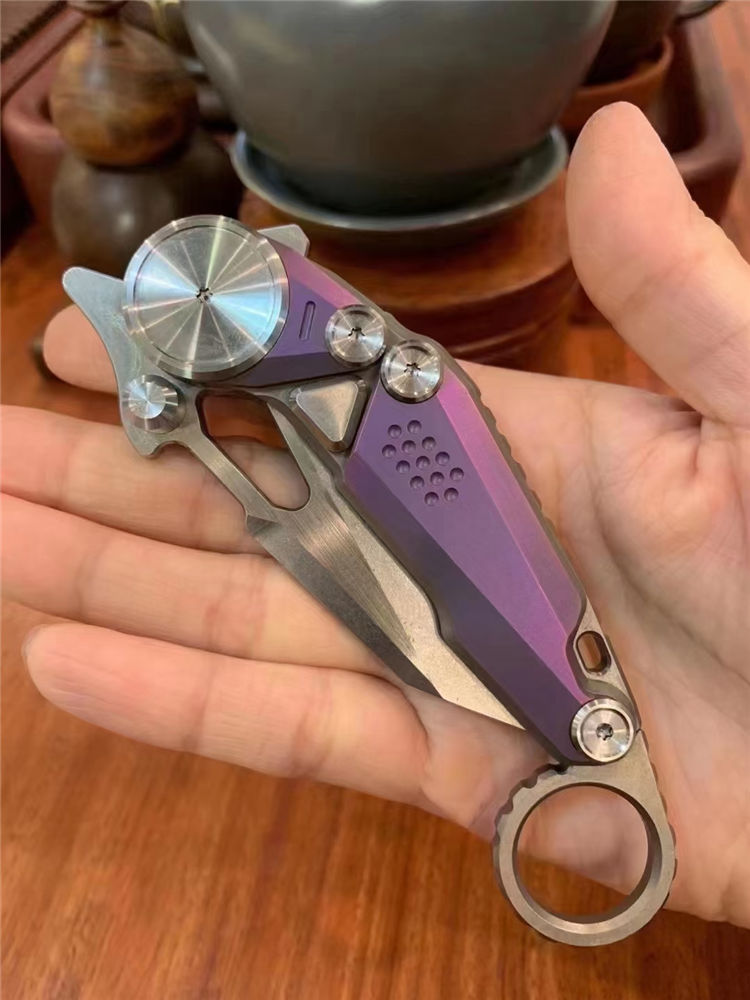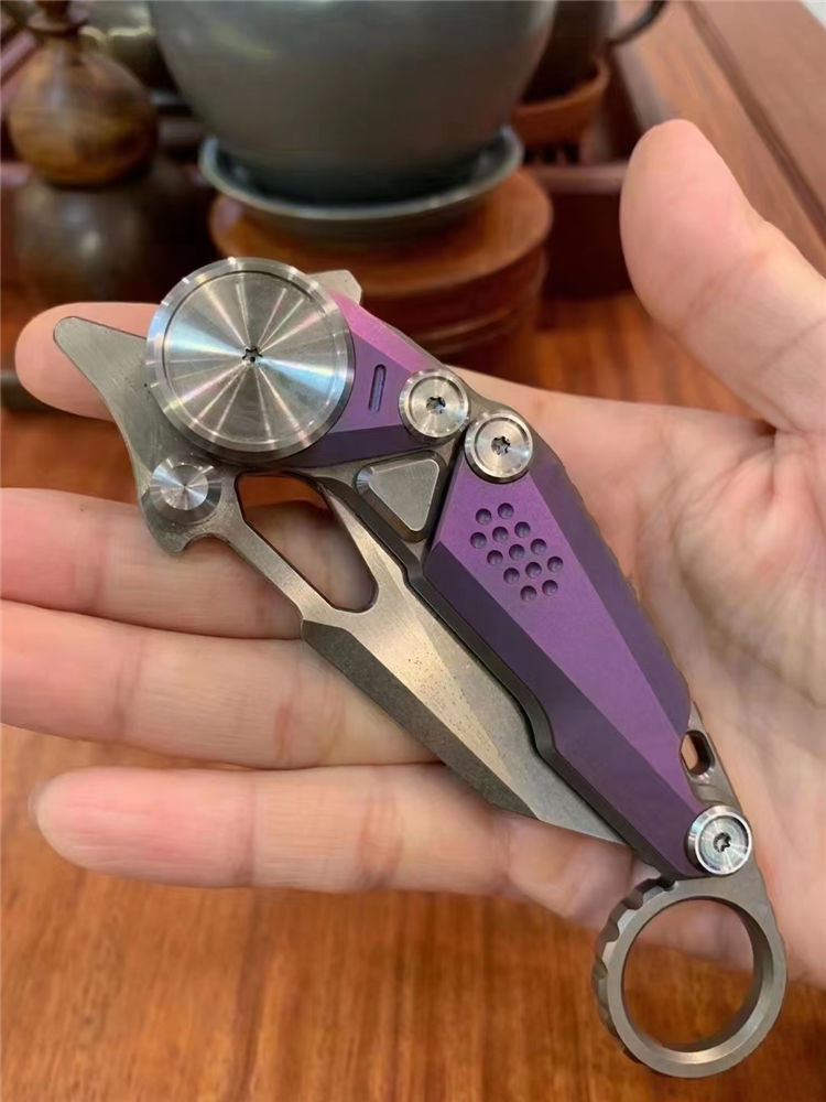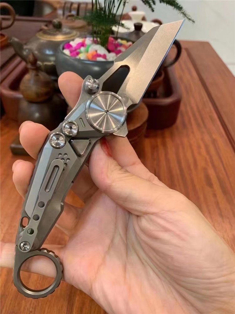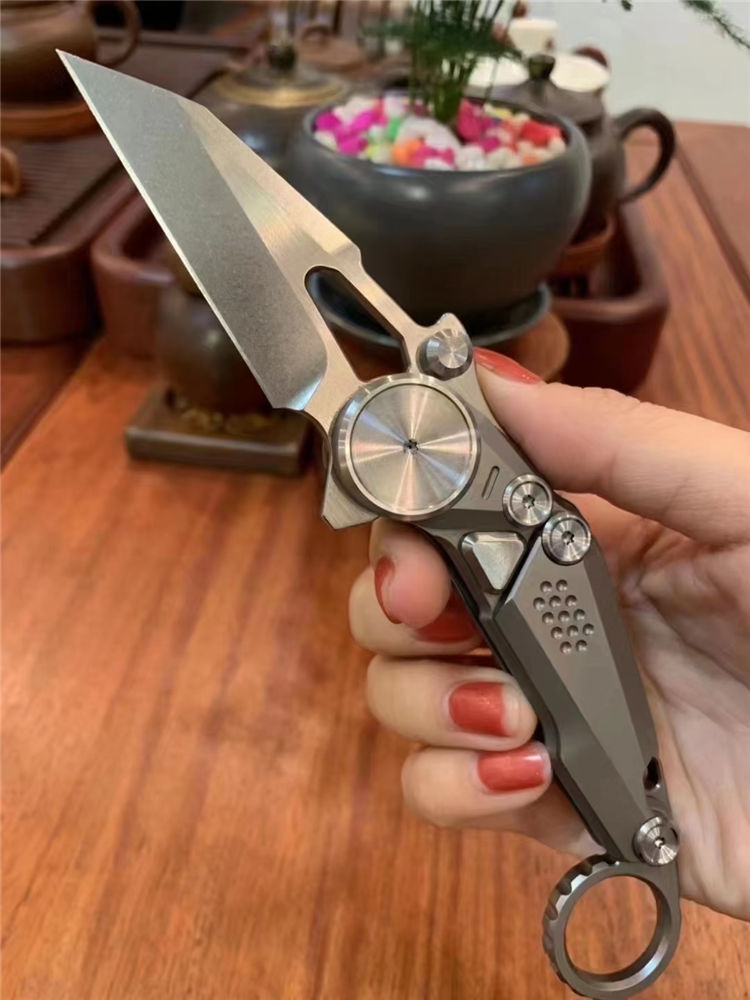M390机械爪刀 总长:20cm 刃长:6.5cm 厚度:3.0mm 刃材:m390 硬度:61-62HRC(真空深冷热处理) 柄材:钛合金 包装:刀袋➕黑色礼盒