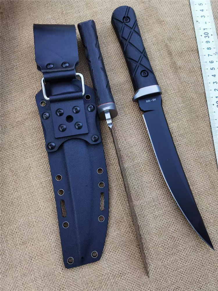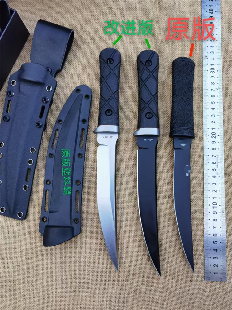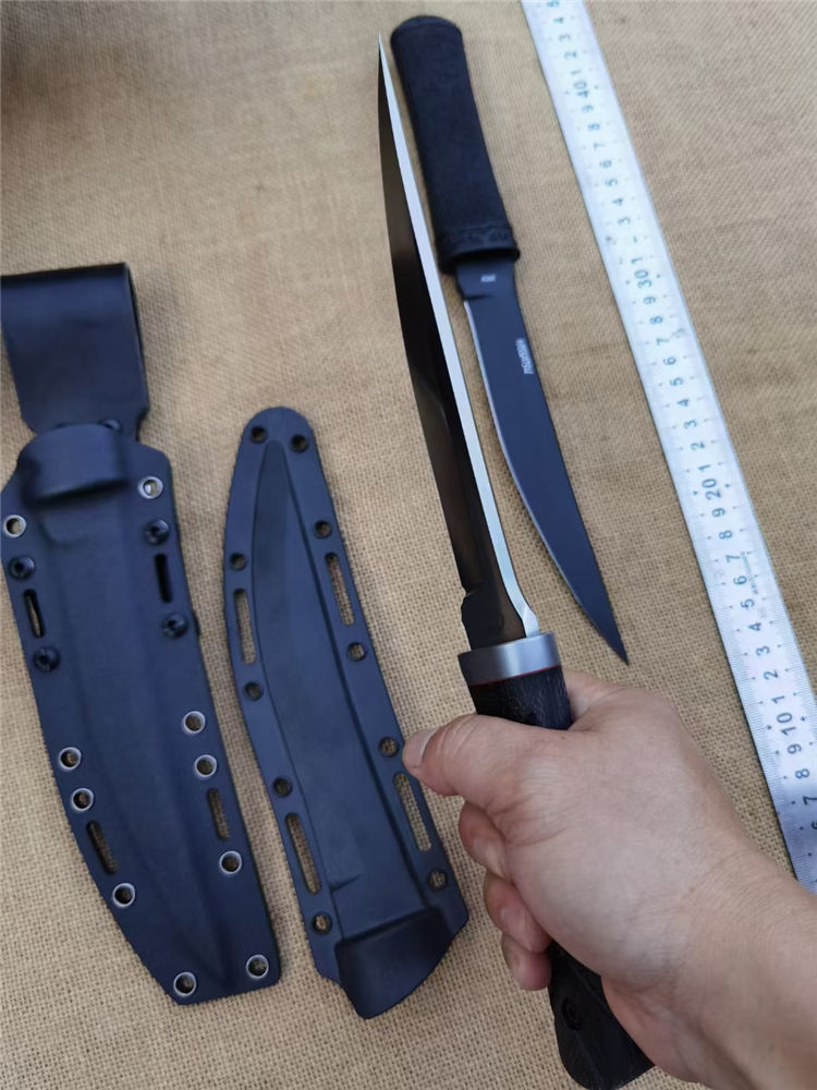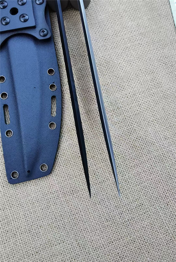 表面:镀黑钛和钢本两种刃面分段打磨,难度增大许多许多。上翘的刀尖,杀气凛凛,强壮的假刃,安心安然
