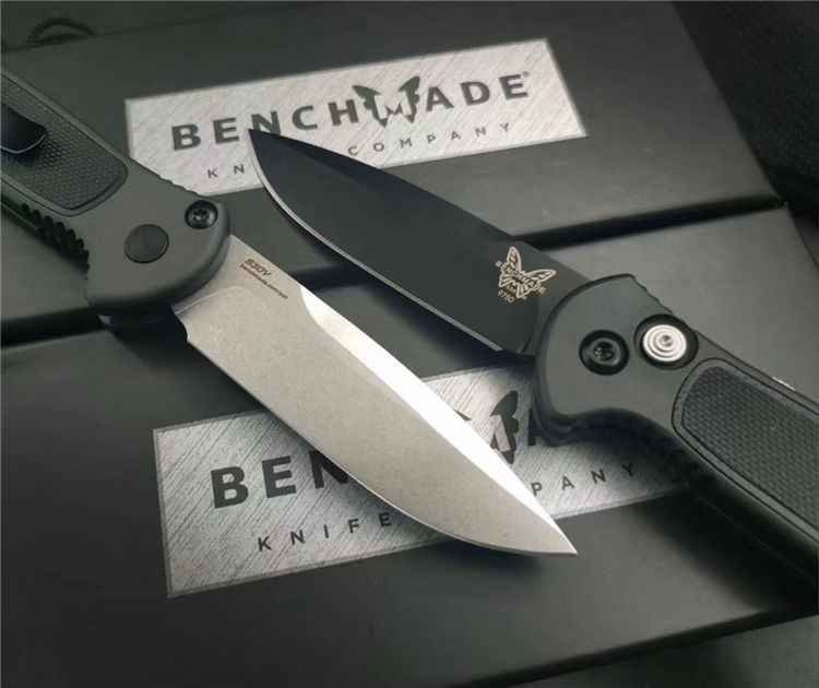 蝴蝶9750侧开跳刀 品牌:蝴蝶(Benchmade) 货号:9750mini 锁定:侧跳 全长:169mm 刃材:S30V深冷热处理 表面:分为钢本石洗和黑色镀钛处理刀刃 硬度:59-60HRC 刃厚:2.5mm 刃长:66mm 柄长:98mm 柄材及处理:钛合金材料,全CNC加工,阳极氧化深灰色 表面:镶嵌黑色G10 重量:约73g 发黑背夹,彩盒包装