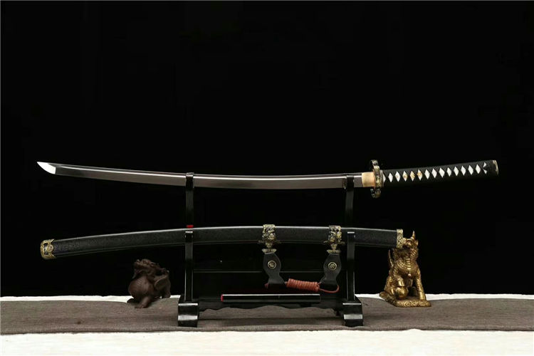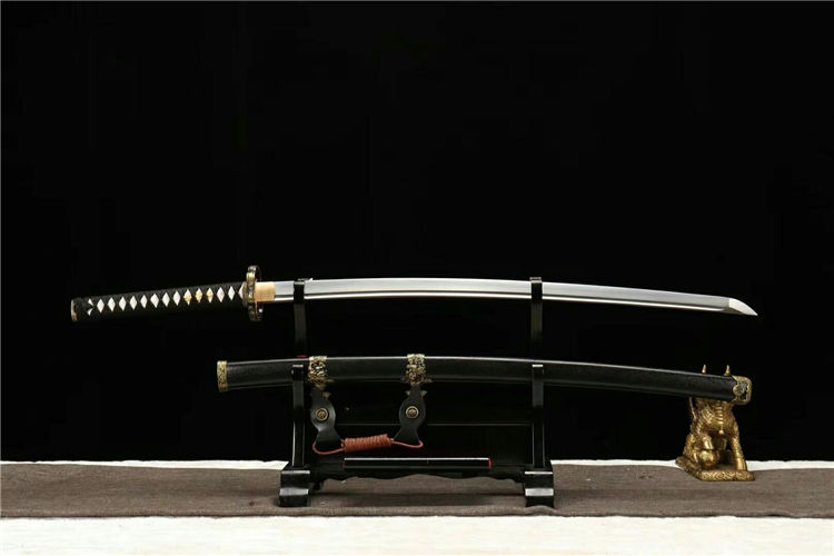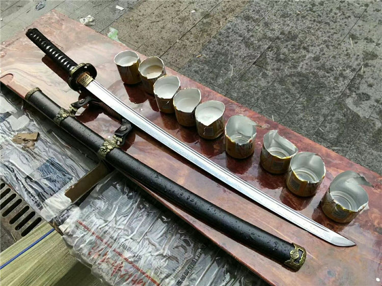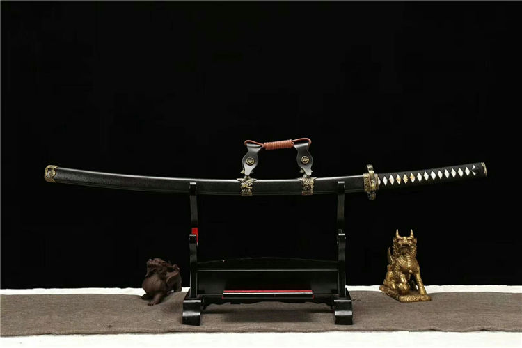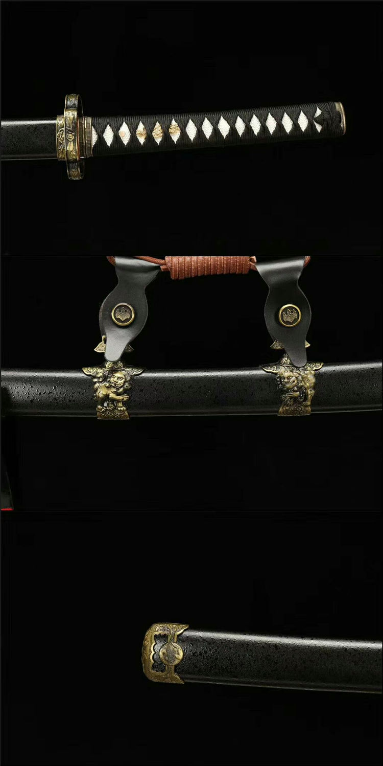 藏锋武士太刀 总长:103cm 刃长:72cm 柄长:27cm 刃宽:3.2-2.8cm 刃厚:0.7-0.5cm 材质:弹簧钢,十四道手工研磨 硬度:硬度60 鞘材:龙泉本地硬木油漆 装具:归墟太刀简装 总重:约1400克 净重:约1050克 刃身:一体锻打刀身 工艺:手工锻造,经过打坯、热煅、铲、锉、研磨、粹火,回火、手工研磨等龙泉刀剑古法制造工序制作而成 性能:砍铁丝或过竹子消纸 注:刀剑为纯手工产品存在误差