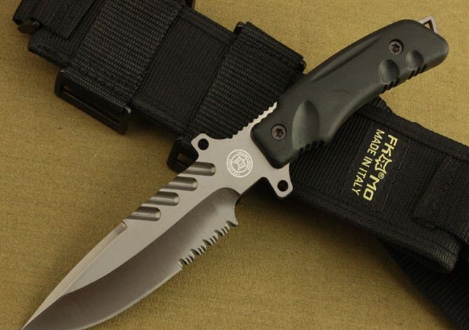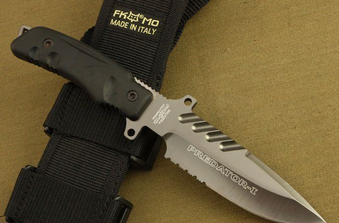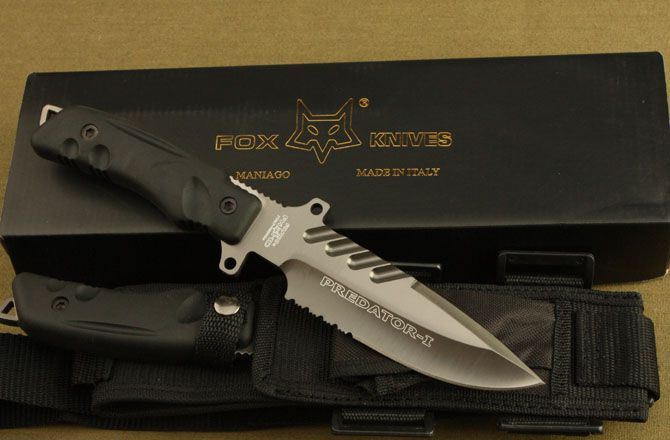 狐狸掠夺者格斗刀3号 全长:28.5cm 刃长:15.5cm 刃宽:4cm(最宽处) 刃厚:0.57cm 刃材:440C 硬度:57HRC 表面:镀钛 柄材:ABS 柄长:13cm 总重:520克(含刀套和包装物) 品质:高品质,刃口锋利