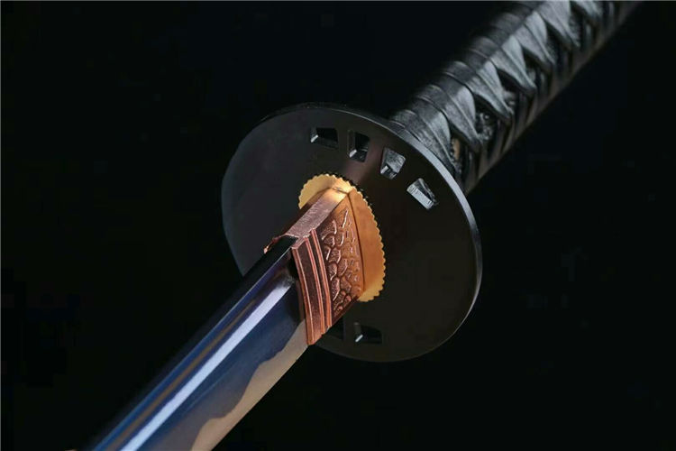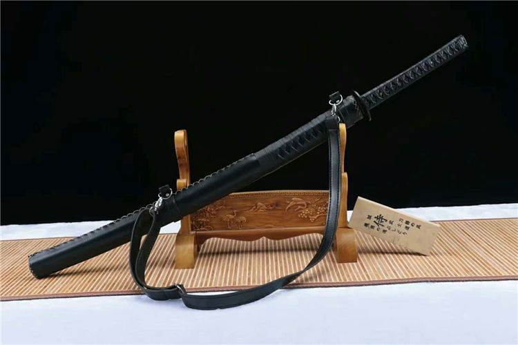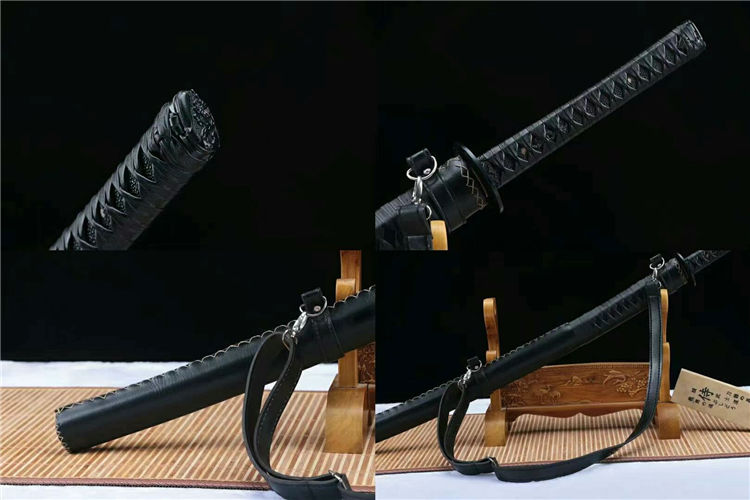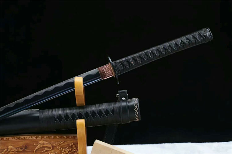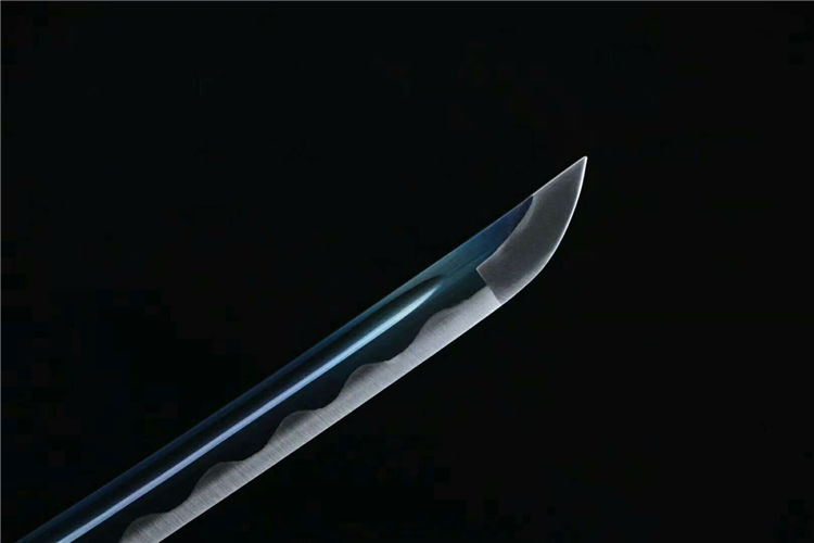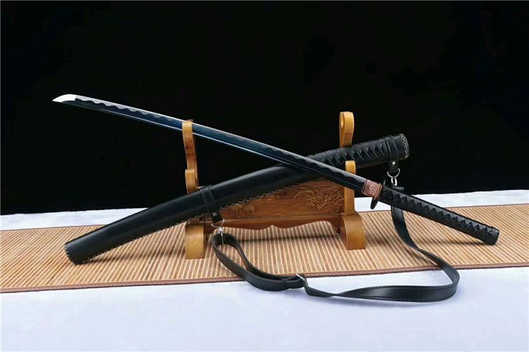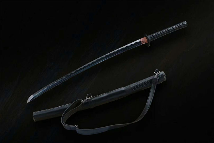 杀死比尔武士刀 刃材:手工高碳钢锻造➕烤蓝工艺 装具:铁、杀死比尔护手 鞘材:实木外包皮套可背式 柄材:实木绕皮绳 适合:收藏 防身 情侣配送 乔迁送礼 武术健身 精美摆设 赠品:精美锦盒、护理油 性能:锋利度极高、轻松横扫一排水哦、削A4纸、劈竹 工艺:刀身千锤百炼、经打胚、热锻、铲、锉、磨、热处理(淬火)回火、初修、精修、等龙泉古法数十道手工制作而成