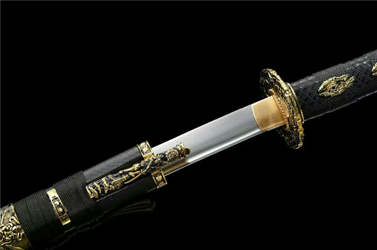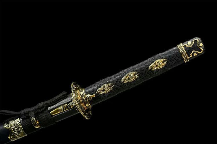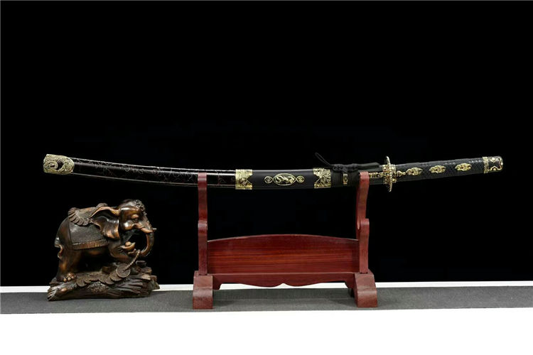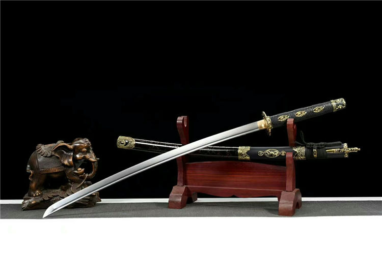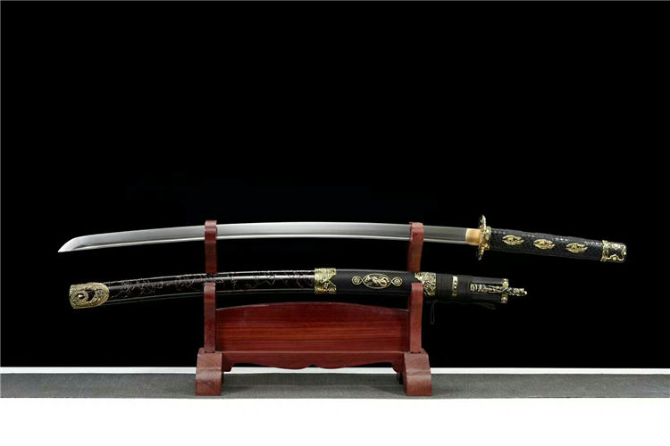 龍焰武士太刀 全长:103cm 刃长:72cm 柄长:26cm 刃宽:3.2cm 刃厚:0.7cm 重量:1.1KG 刃材:高猛钢 装具:合金装具 鞘材:实木油漆 柄材:实木绕绳 下续:金皮下续 适合:收藏 防身 情侣配送 乔迁送礼 武术健身 精美摆设 赠品:高端锦盒、护理油 性能:锋利、劈竹、削A4 无压力、一体老虎尾锻造 工艺:刀身千锤百炼、经打胚、热锻、铲、锉、磨、热处理(淬火)回火、初修、精修、等龙泉古法数十道手工制作而成