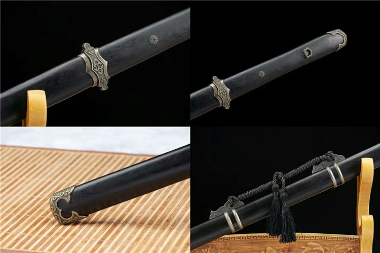 简装唐剑 刃材:手工高锰钢锻打、纯手工精细研磨工艺 装具:锌合金青古铜套装 鞘材:上等乌木 柄材:上等乌木 适合:收藏 防身 情侣配送 乔迁送礼 武术健身 精美摆设 赠品:精美锦盒、护理油 性能:锋利度极高 硬度:60HRC 工艺:刀身千锤百炼、经打胚、热锻、铲、锉、磨、热处理(淬火)回火、初修、精修、等龙泉古法数十道手工制作而成