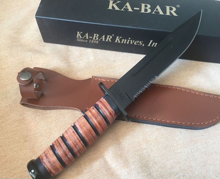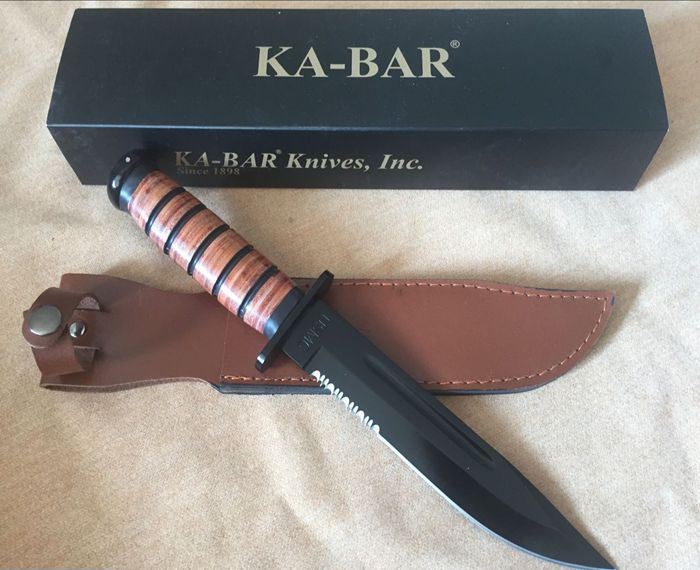 皮柄卡巴1217半齿 全长:31CM 刃长:16.5 CM 刃厚:0.4 CM 柄长:12.7CM 刃材:440高级不锈钢刀刃 硬度:57HRC 重量:400克 刀柄:真皮 刀鞘:头层纯牛皮 纯牛皮的刀套、纯牛皮的刀柄!刀身采用440高级不锈钢制造,刀刃锋利,刀身厚度甚至比美国产卡巴还要厚,可能是仿造者更倾向于让它来干些粗暴的活吧。 绝对超值的一把刀,如果你舍不得用原品来干活的话那就用这把国产的1217来干吧!